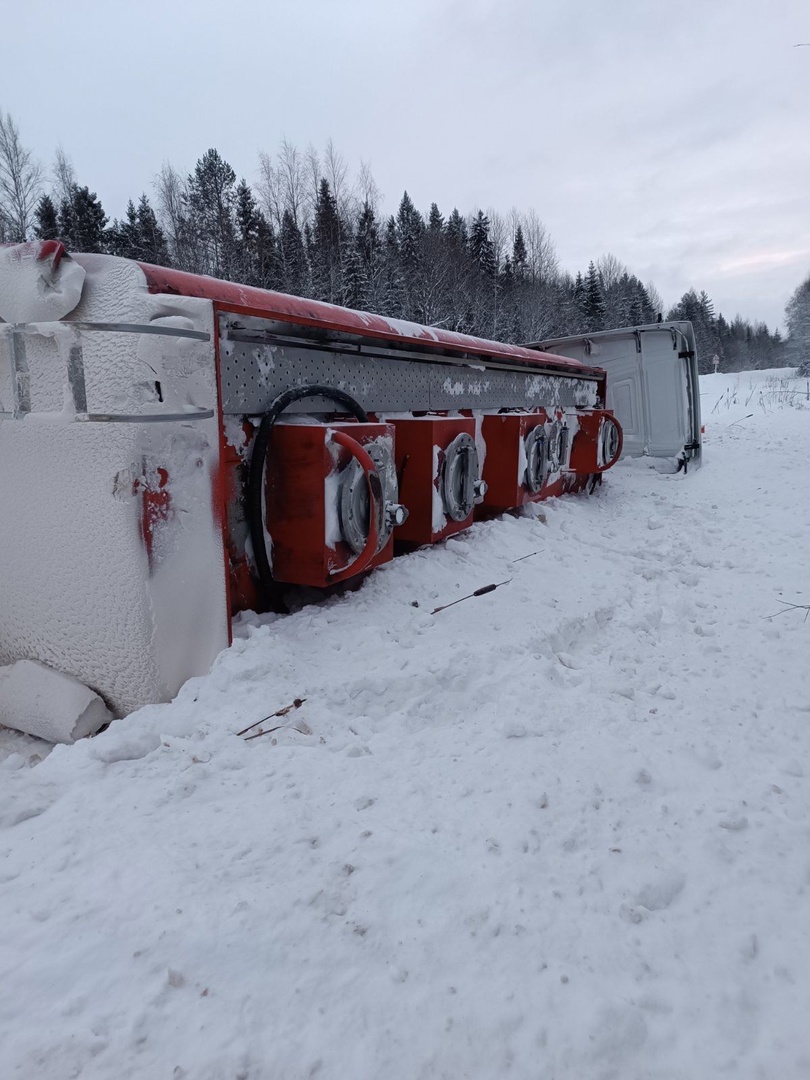 По предварительным данным, грузовик «Мерседес» двигался по проезжей части. Однако в какой-то момент, по неизвестной пока причине, водитель не справился с управлением. В итоге транспортное средство съехало в кювет и перевернулось. По словам очевидцев, на момент аварии бензовоз имел практически полную загрузку. Были заполнены все, кроме последнего отсеки.