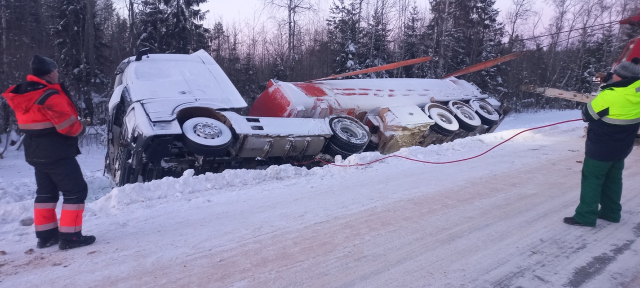 Для эвакуации транспорта на место прибыла бригада специалистов. С помощью технических устройств им удалось поднять бензовоз и вывести обратно на трассу. На время эвакуации транспорта дорога была перекрыта сотрудниками ГИБДД. Информации о пострадавших в инциденте пока нет. В деталях случившегося разбираются эксперты, сообщает ГТРК «Вологда» со ссылкой на сообщество в соцсети «ПРО Полиция. Вологодская область».