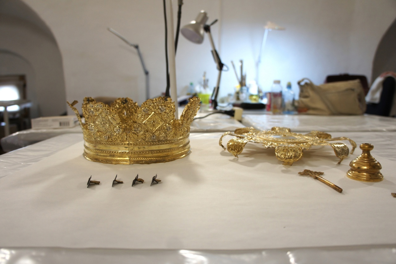 Работы над венчальной парой велись в течение четырёх месяцев. Восстановлением экспонатов XVIII века занималась художник-реставратор София Волкова.
