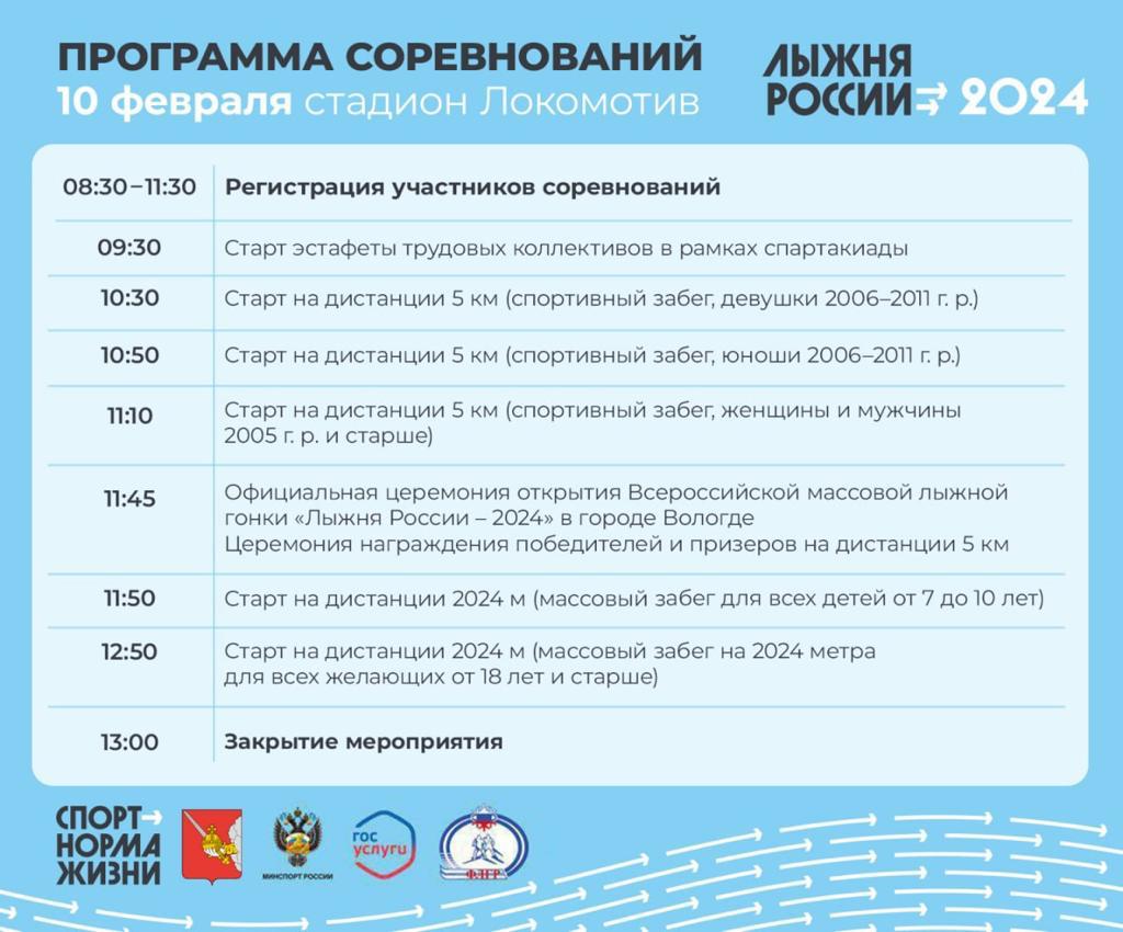 «В рамках "Лыжни России" предусмотрены две дистанции: 5 километров и специальный забег на 2024 метра. В гонке могут принять участие как взрослые, так и дети. Приглашаю вологжан присоединиться к этому значимому спортивному мероприятию», — рассказал начальник Управления физической культуры и массового спорта Администрации Вологды Дмитрий Жиобакас.