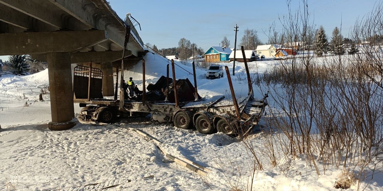 Авария произошла в минувшие выходные в Никольском округе. По предварительным данным, грузовик пробил металлическое ограждение бетонного моста и упал на лёд реки. В результате ДТП автомобиль получил серьёзные повреждения. О состоянии водителя информации нет. На месте работали сотрудники Госавтоинспекции. Причина произошедшего выясняется, сообщает ГТРК «Вологда».