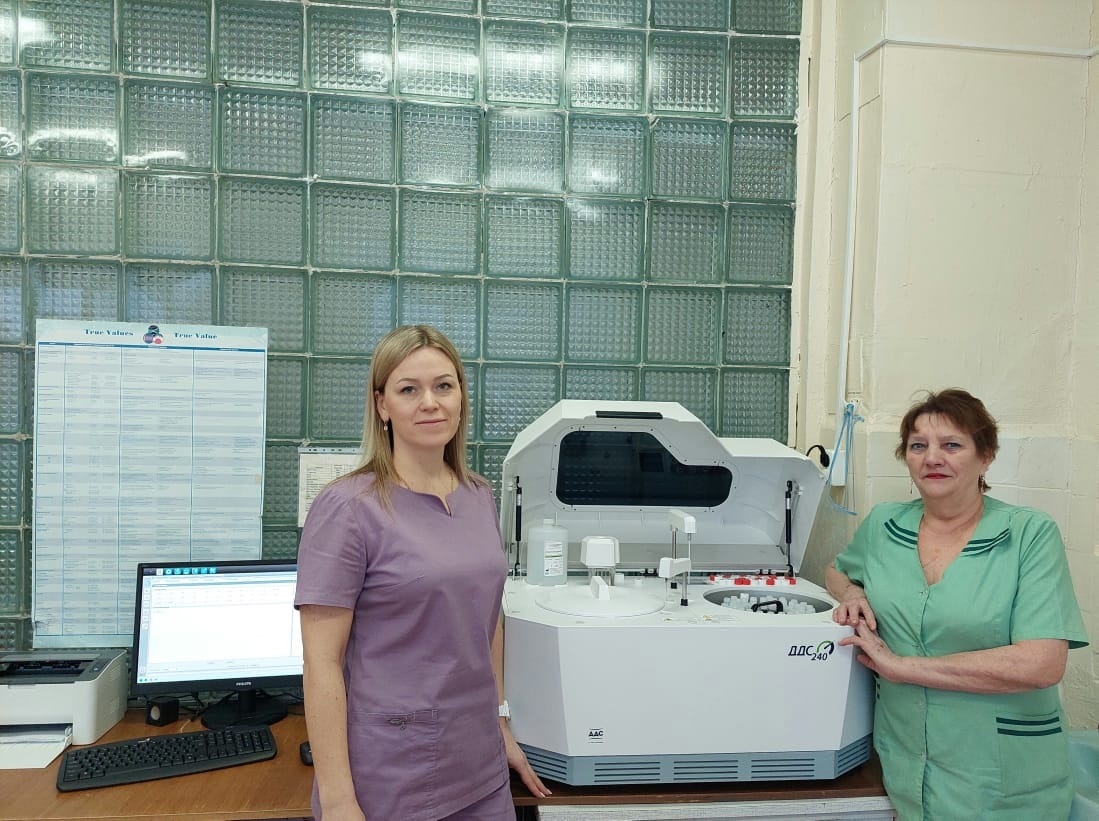 Речь идёт о приборе ДДС 240. Это настольный биохимический анализатор российского производства, работающий на отечественных реагентах. Техника была передана больнице частной компанией в рамках программы импортозамещения.