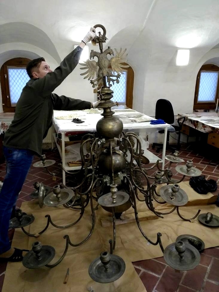 До этого времени экспонат ни разу не реставрировался и не был представлен посетителям музея. Паникадило весит, без малого, 400 килограмм. В фонды на хранение люстра поступила в 40-е годы.