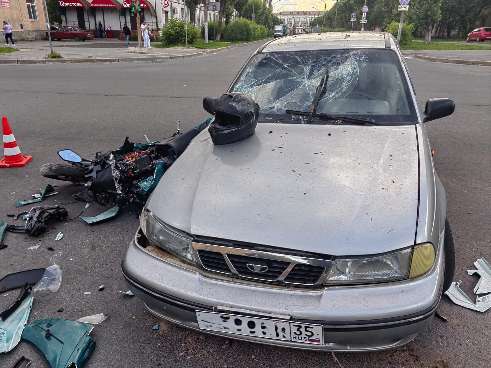 Жёсткая авария с участием мотоцикла и иномарки произошла в Череповце