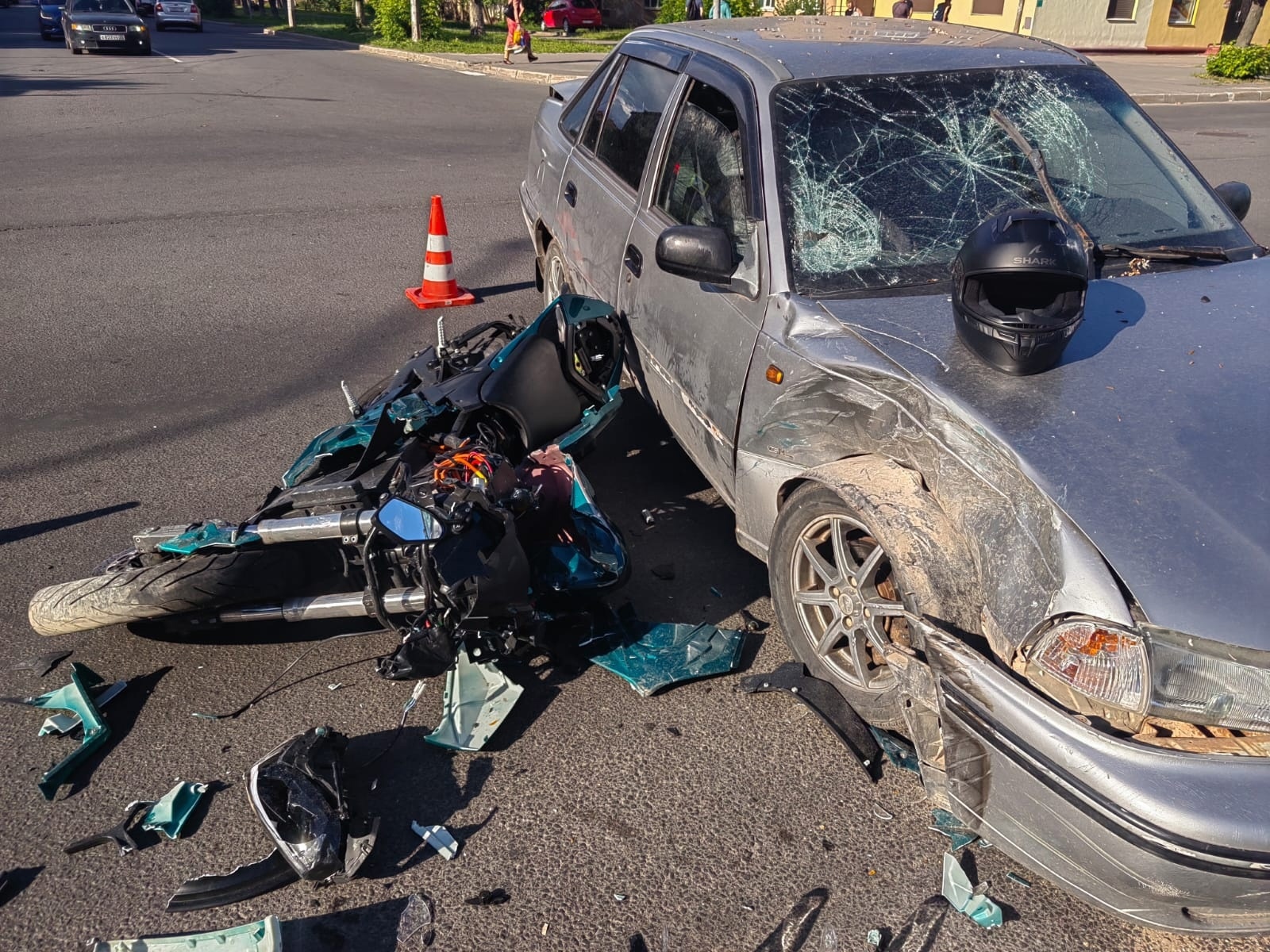По предварительной информации, водитель «Нексии», при повороте налево, не предоставил преимущества мотоциклу. В результате спортбайк на скорости врезался в правый борт иномарки. 25-летний водитель мотоцикла госпитализирован с места происшествия. У него подозрение на закрытую черепно-мозговую травму, перелом предплечья и множественные ушибы. Специальная экипировка и шлем спасли его от серьёзных увечий. Хозяин легкового автомобиля не пострадал.