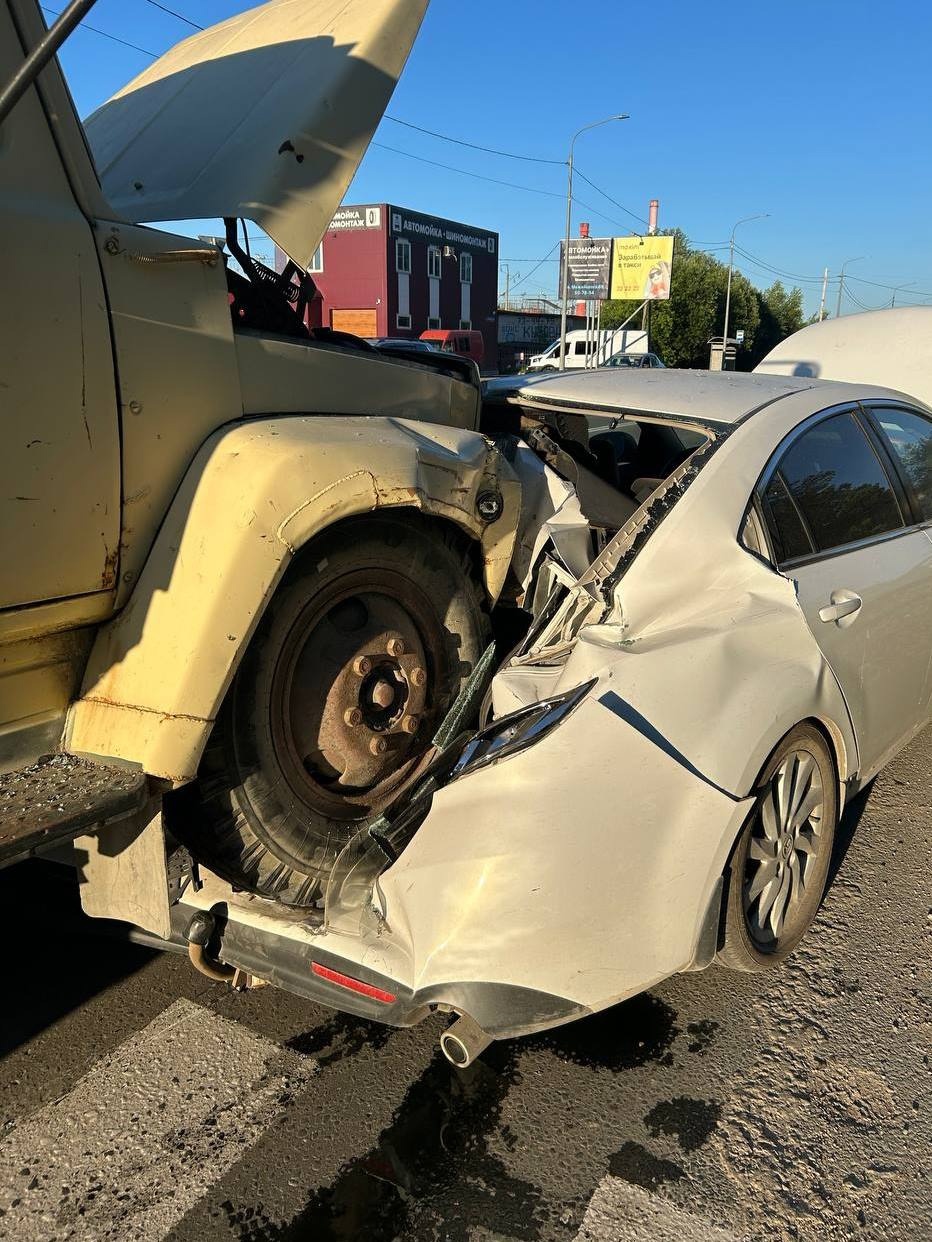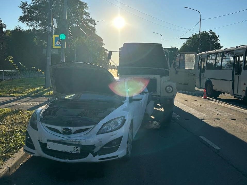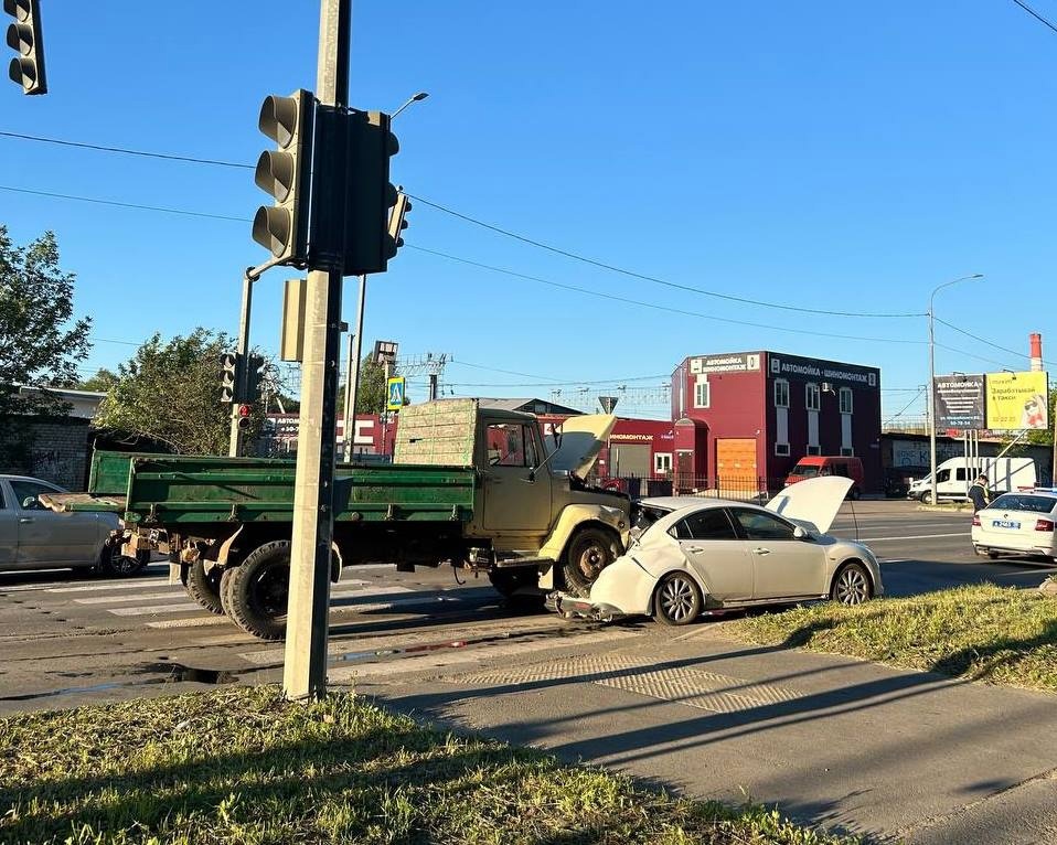 Авария произошла сегодня вечером на улице Можайского. По предварительной информации, 27-летний водитель грузовика ГАЗ на светофоре врезался в «Мазду». По инерции удара машины зацепили ещё и «Рено», находившийся поблизости.