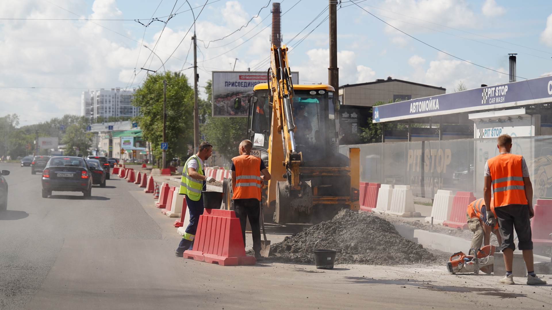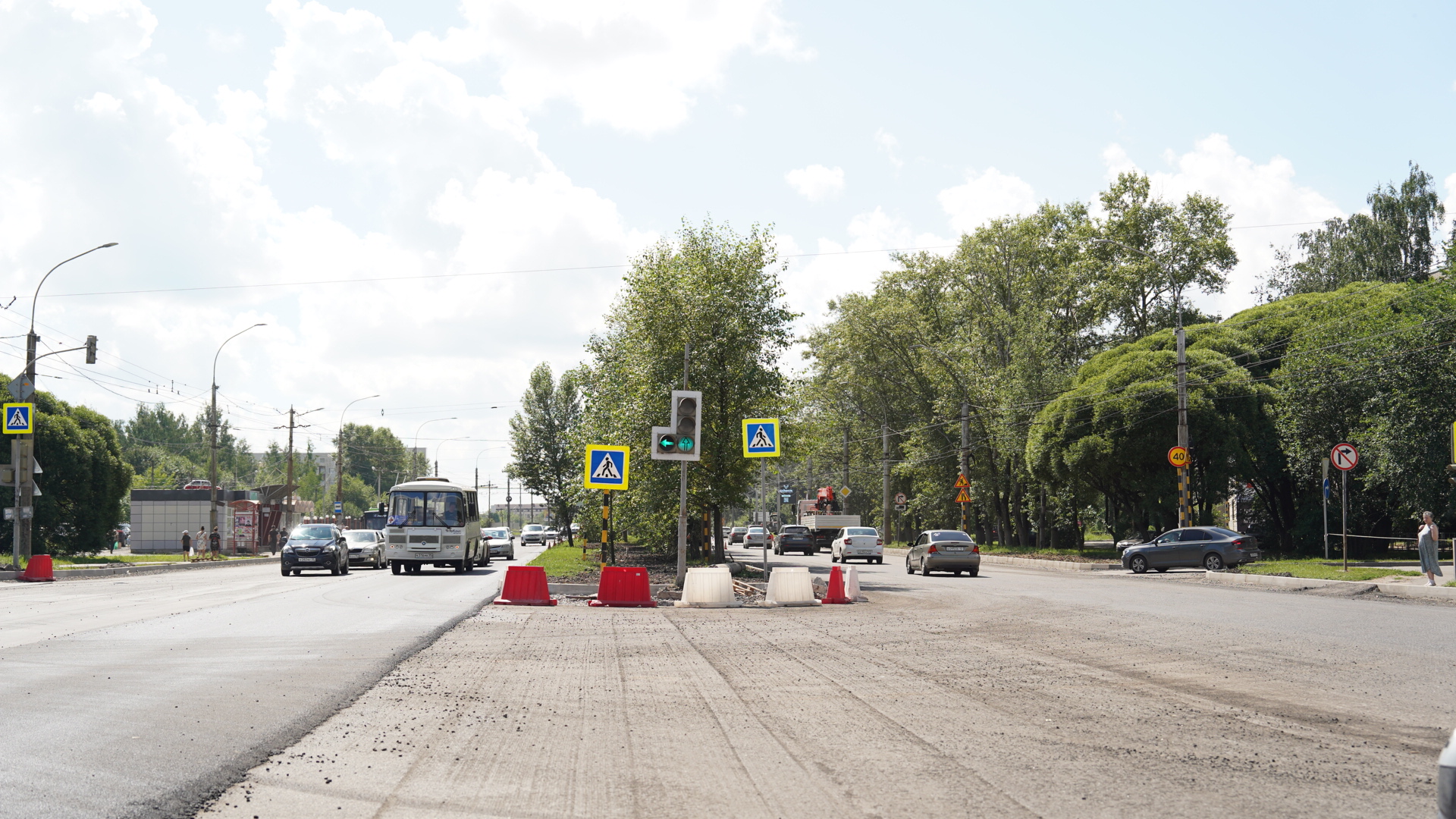 «На Пошехонском шоссе практически завершена установка нового бортового камня. Завершились земляные работы по устройству дополнительных полос. Готовность газонов составляет более 50%. Также здесь благоустраиваем тротуары и прилегающую территорию. В сроки подрядчик укладывается, рисков срыва сдачи объекта нет. К 1 сентября все работы будут завершены. Также мы решаем вопрос по переносу опор контактной сети троллейбуса. Речь идёт об участке рядом с Молкомбинатом. Там запланированы парковка и расширение заездного кармана», – прокомментировал и. о. мэра Вологды Андрей Накрошаев.