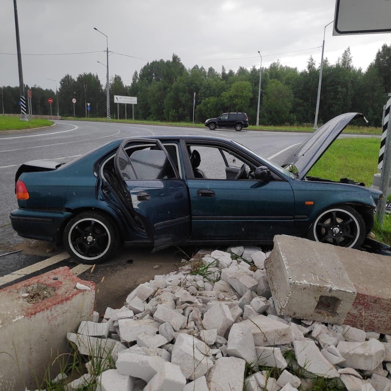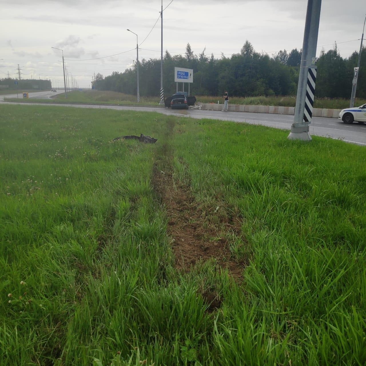 В конце прошлой недели 18-летний водитель на «Хонде Цивик» наехал на бордюр. Произошло это на кольце Южного шоссе. Судя по следу на газоне, развязку он проехал в буквальном смысле прямо. Машина налетела на бордюры. Водитель за медпомощью не обращался. Однако его 15-летняя пассажирка пострадала. Девушку увезли в больницу на обследование.