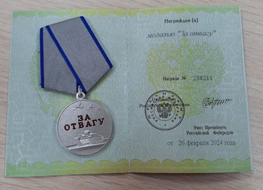 Оказалось, что боец, которого зовут Юрий П., был удостоен медали «За Отвагу» ещё в 2022 году. Однако о награде он узнал только сейчас. Медаль была вручена ветерану СВО при содействии фонда «Защитники Отечества».