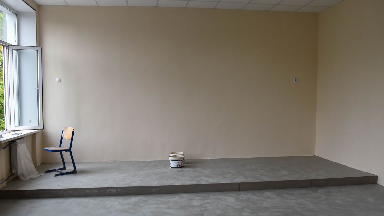 В школе №15 тоже проходятся ремонтные работы. Объект готов на 80%. Входную группу сделают к концу этой недели. По словам подрядчика, в здании осталось убрать крупный мусор, застелить линолеум, выполнить покрасочные работы. В настоящее время готовы стены, установлены двери, обновлена система отопления. В пищеблоке укладывают плитку. В санузлах установлена сантехника. В спортзале идёт подготовка под паркет и освещение. Паркет обещают выложить к 24 августа.