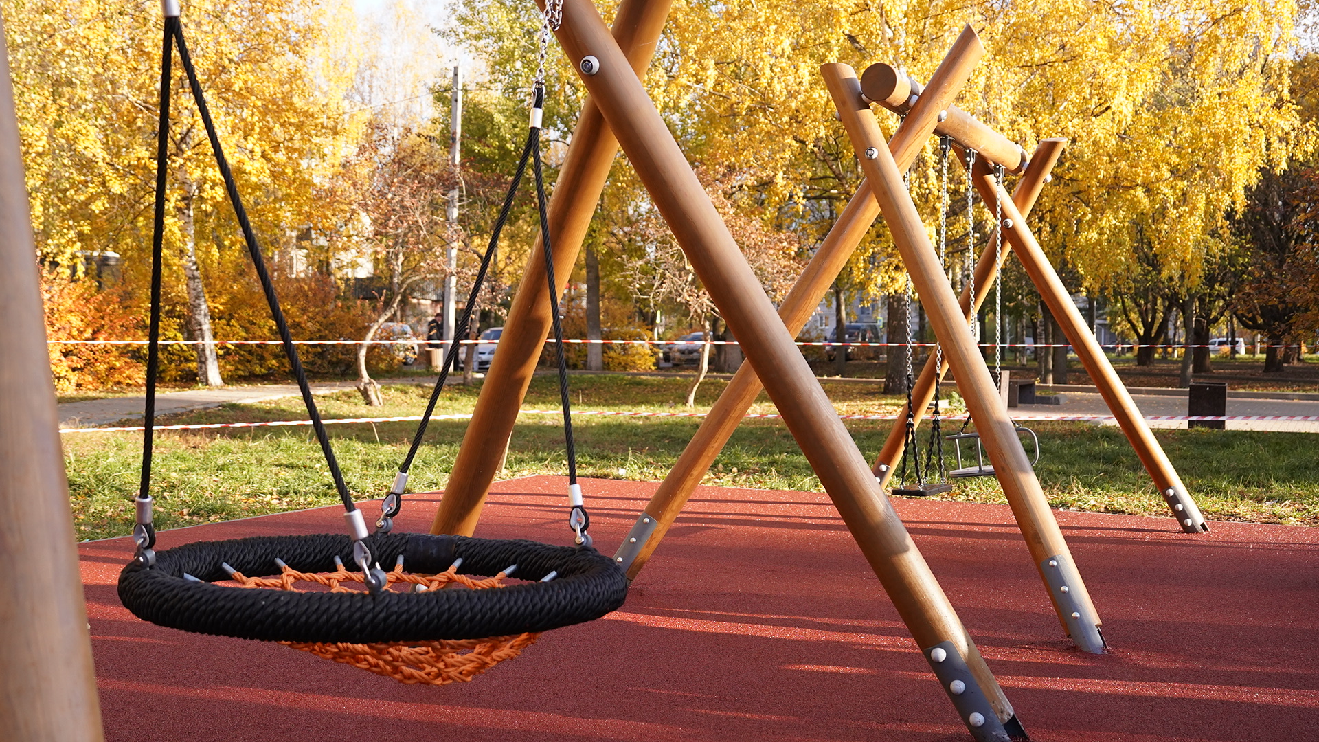 Там установили новые качели, лазалки, горки и специальное резиновое покрытие.