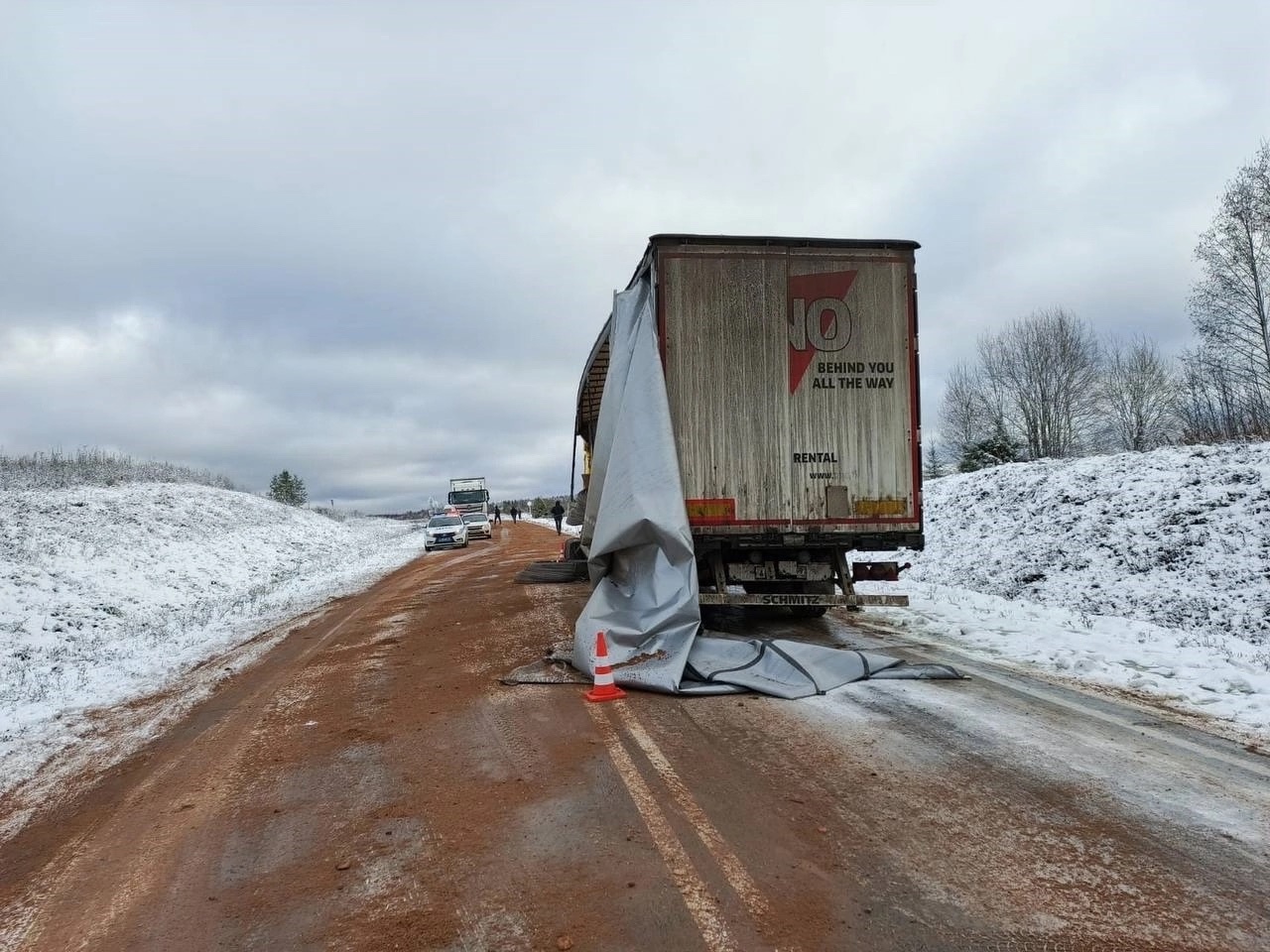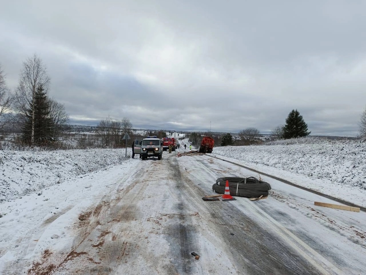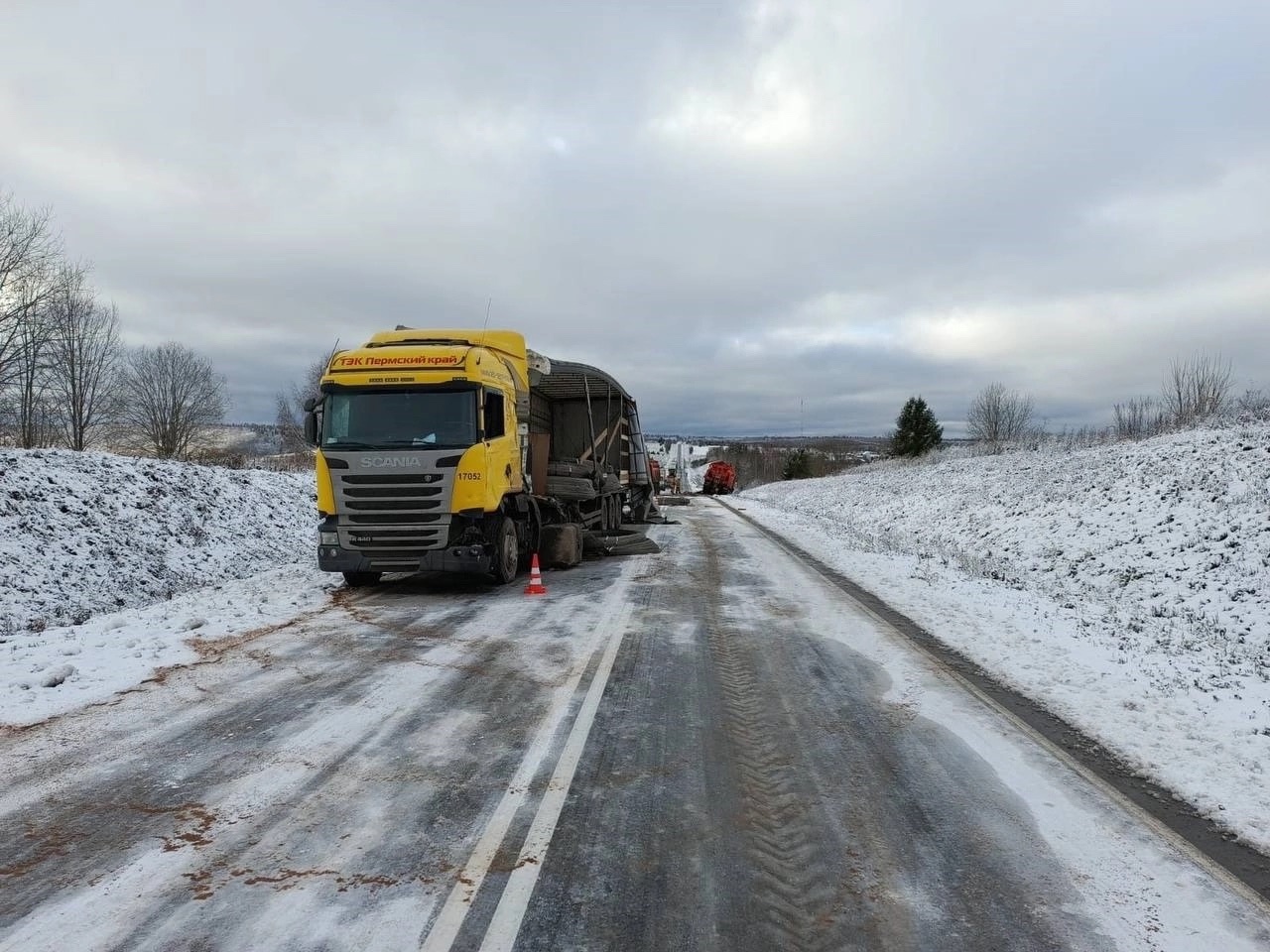 По предварительным данным, там столкнулись грузовик с прицепом «Скания», под управлением мужчины 1962 г.р., и КамАЗ. За рулём второго транспорта находился мужчина 1976 г.р., в момент аварии он осуществлял подсыпку дороги песком.