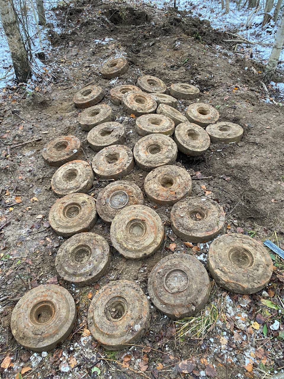На место прибыли сотрудники инженерно-технического отделения ОМОН «Вымпел» управления Росгвардии. Кинолог со служебной собакой обследовали местность. В результате было обнаружено несколько десятков аналогичных предметов. Ими оказались учебные мины УТМ-62 М – всего 34 штуки. После обследования специалисты подтвердили, что они не представляют опасности для окружающих. После проведения необходимых экспертиз находка будет утилизирована. Об этом сообщает ГТРК «Вологда» со ссылкой на областное управление Росгвардии.