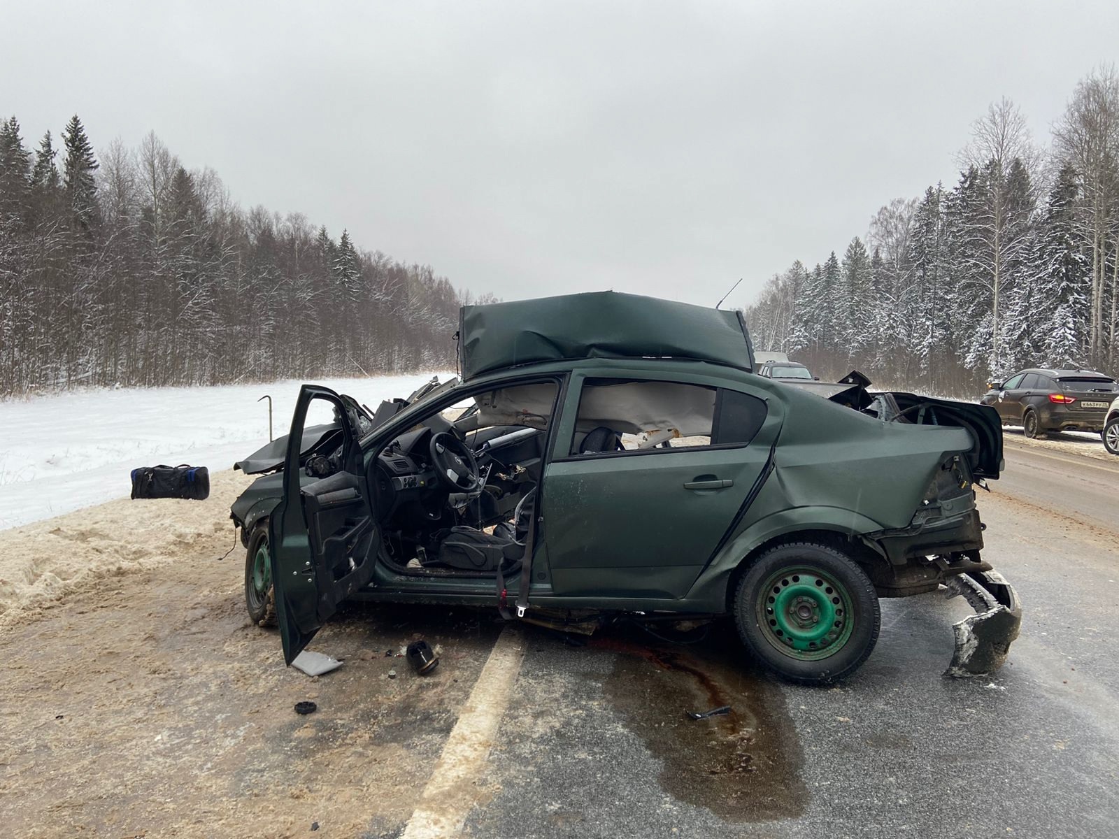 Автомобиль «Опель Астра» ехал по федеральной автодороге на территории Сокольского округа. За рулём находился мужчина 1988 г. р. По предварительным данным, на 502 километре трассы водитель потерял управление. В результате иномарка выехала на встречную полосу и врезалась в большегруз ДАФ.