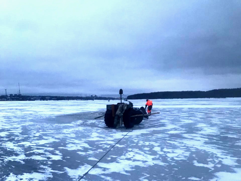 Мужчина на болотоходе выехал на Шексну-реку. Тонкий лёд не выдержал транспортное средство, и оно провалилось. Техника осталась на плаву, однако выехать на поверхность не смогла. Водитель обратился в спасательную службу. Прибывшие на место специалисты зацепили болотоход и с помощью судна на воздушной подушке вытащили его к берегу, – сообщает ГТРК «Вологда» со ссылкой на группу «Спасатели Череповца» в соцсети.