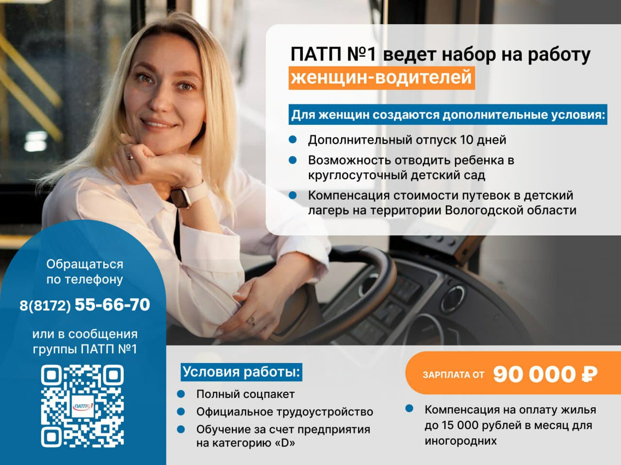 По информации пресс-службы городской администрации, предприятие ПАТП №1 обслуживает 22 автобусных маршрута и 2 троллейбусных. Ежедневно общественный транспорт перевозит порядка 50 тысяч пассажиров. Сейчас автотранспортная компания активно набирает сотрудников, в том числе женщин. Для них также введены дополнительные меры поддержки. Как писали Вести35.рф, женщинам-водителям предоставляется дополнительно 10 дней к отпуску, их детям – круглосуточный детсад. Ещё одна мера поддержки – это полная компенсация стоимости путёвок школьников в детские лагеря, расположенные в Вологодской области.