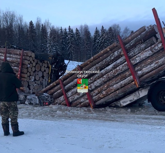Гружёный лесом КАМАЗ ехал по ледовой переправе через реку Юг. В какой-то момент лёд не выдержал грузовую машину, и она частично провалилась в воду. К счастью, обошлось без пострадавших. По предварительным данным, причиной происшествия стало нарушение грузоподъёмности.