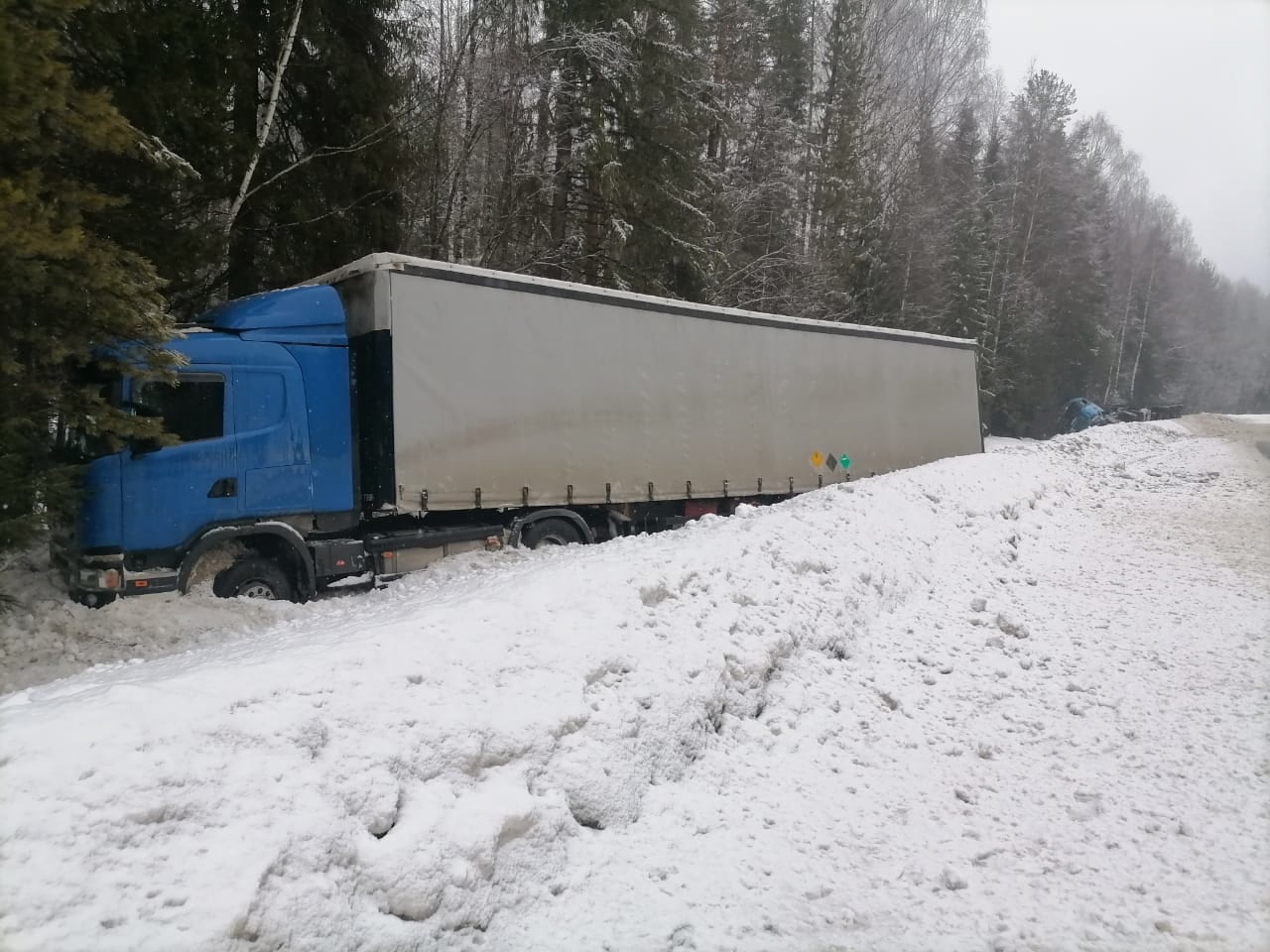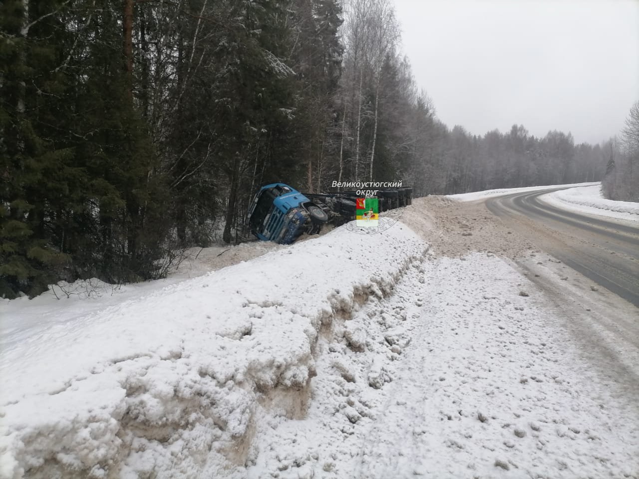 По предварительным данным, два грузовых автомобиля съехали с трассы в кювет около деревни Михнинская. Фура и лесовоз оказались в снегу за пределами проезжей части неподалёку друг от друга. При этом второе транспортное средство опрокинулось на бок. О пострадавших информации нет. Причина аварии выясняется.