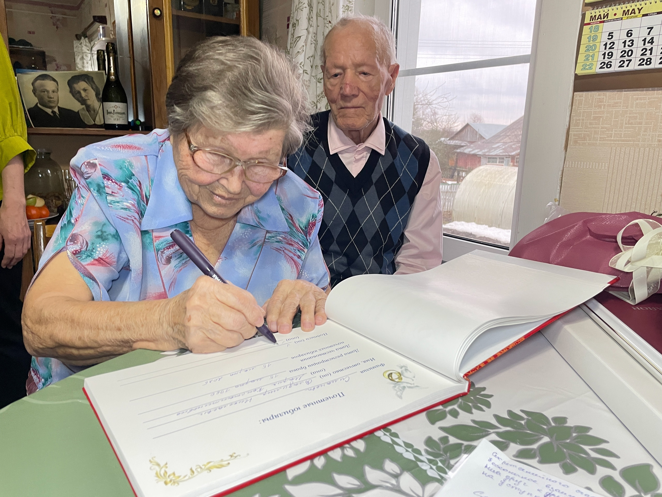 С 65-летием супружеской жизни Симановых поздравили родственники, глава Шекснинского района Дмитрий Кузьмин и руководитель местного ЗАГСа Галина Евдокимова. Семейной паре вручили подарки от губернатора области Георгия Филимонова и от муниципалитета, – сообщает ГТРК «Вологда».