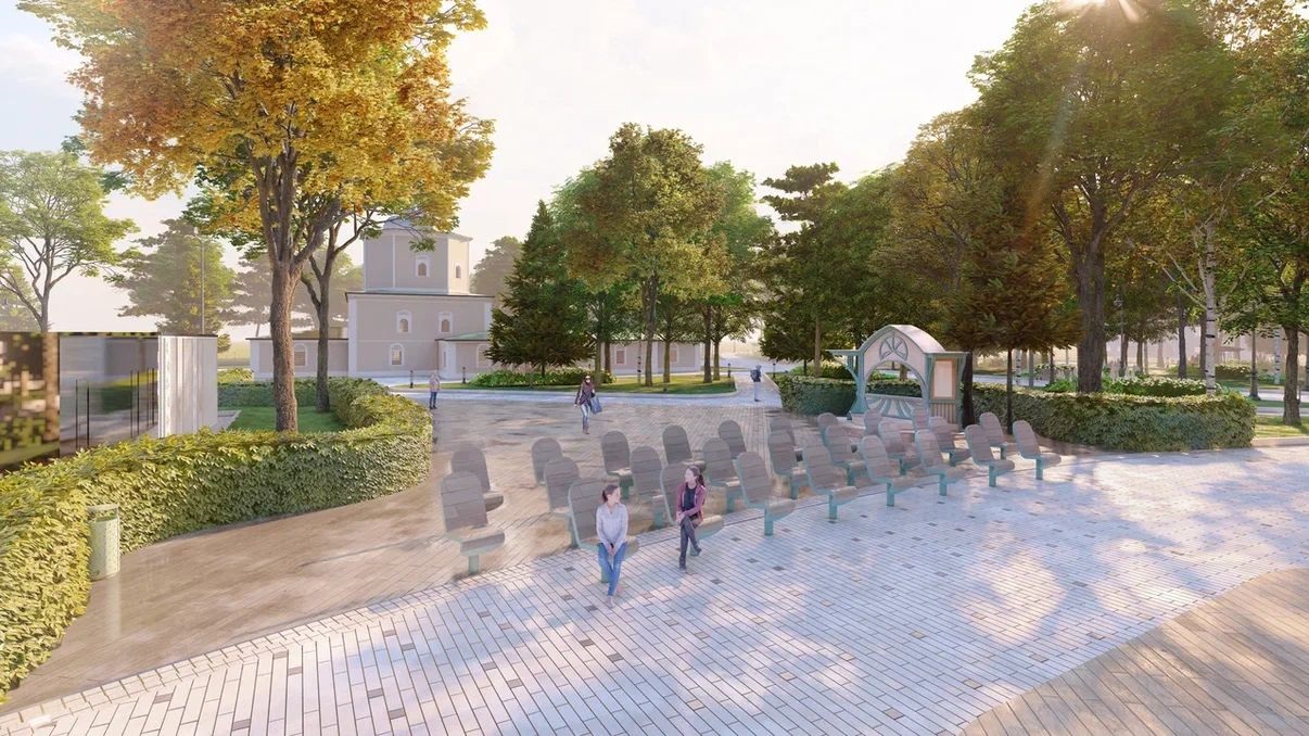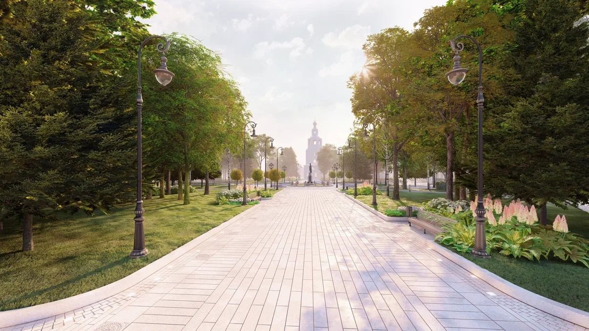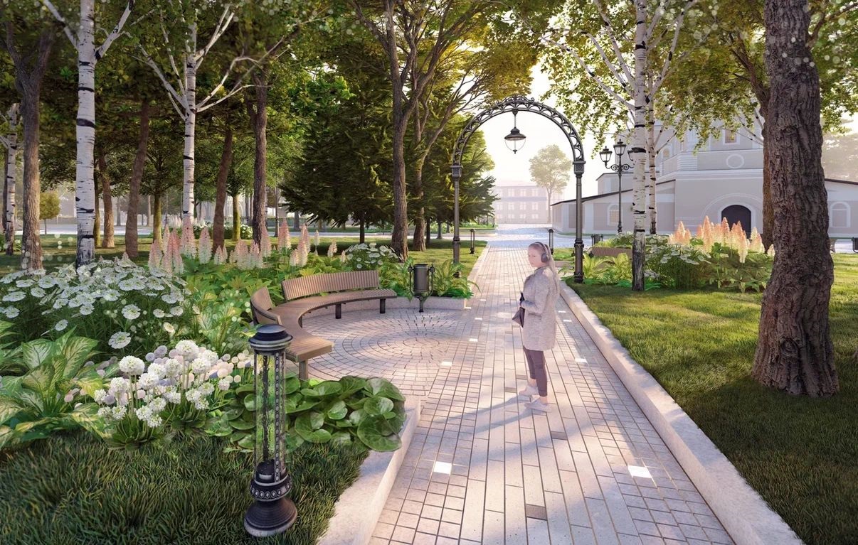 По всей территории парка появятся выложенные брусчаткой прогулочные аллеи с прилегающими зонами отдыха, оборудованные лавочками, радиусными скамейками, парковыми качелями с деревянным навесом, урнами. В едином стиле запланированы павильоны для общественного питания, аренды оборудования, общественный туалет. Предусмотрена парковка вдоль Советского проспекта – для легкового транспорта и туристических автобусов. Её длина – 179 м.