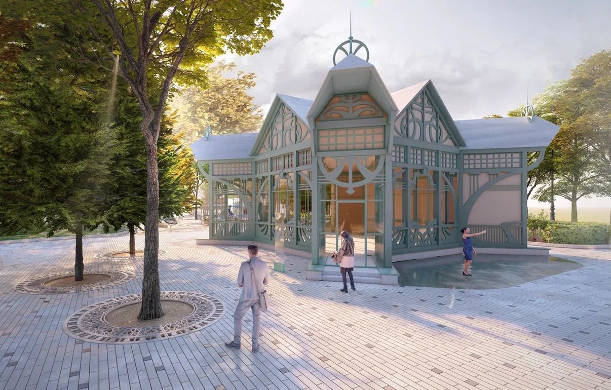 В парке появится павильон, подобный тому, что располагался здесь раньше, со сценой и деревянным настилом. Там будет кафе. Помимо этого, предусмотрена возможность размещения выставочной экспозиции. Запланированы и разворотные парковые сидения. При необходимости из них можно сформировать импровизированный зрительный зал. На этой же локации разместится небольшой домик для показа кукольных представлений.