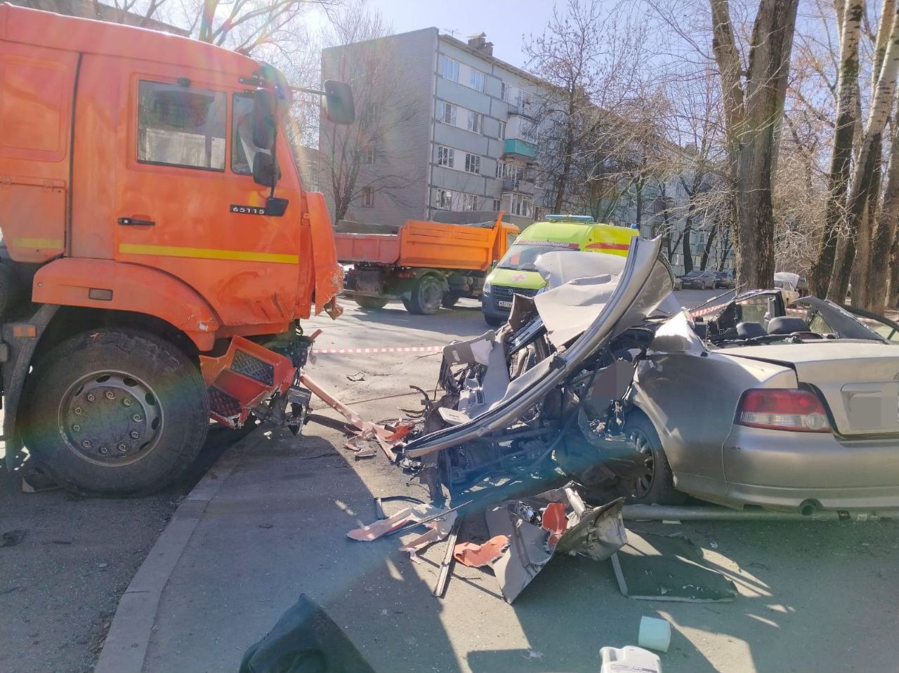 По предварительным данным областного УМВД, автомобиль КАМАЗ ехал по Пролетарской. За рулём находился 35-летний мужчина. На перекрёстке с улицей Маяковского водитель грузовика должен был уступить дорогу легковой «Мицубиси Галант», однако проигнорировал требования дорожного знака. В результате произошло столкновение. От удара легковушку буквально расплющило.