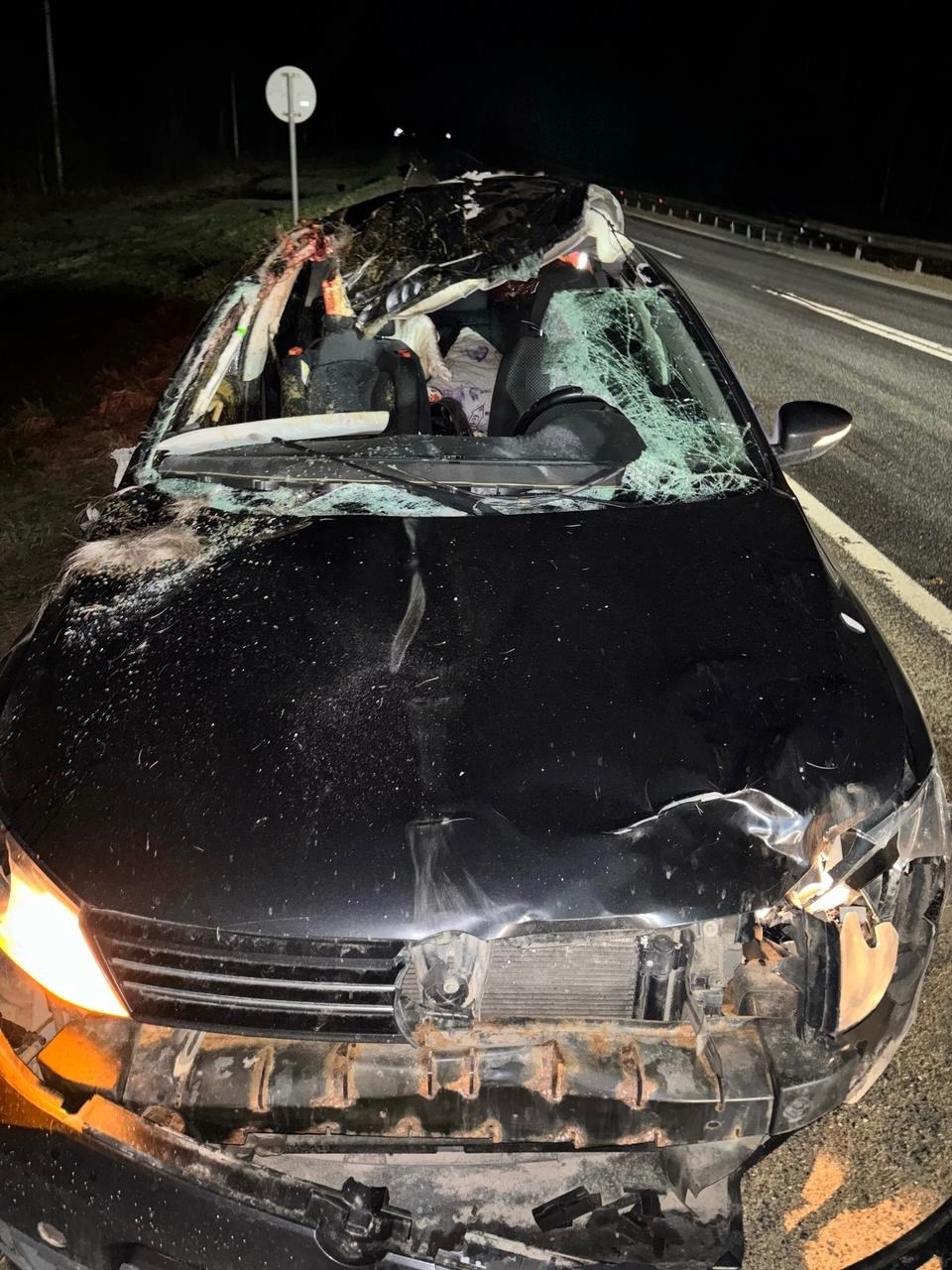 По предварительной информации, водитель автомобиля «Фольксваген» не успел затормозить перед выбежавшим на проезжую часть лосем. Иномарка врезалась в животное. В результате столкновения пострадал сам водитель «Фольксвагена» и трое его пассажиров, включая маленьких детей 2020 и 2025 года рождения.