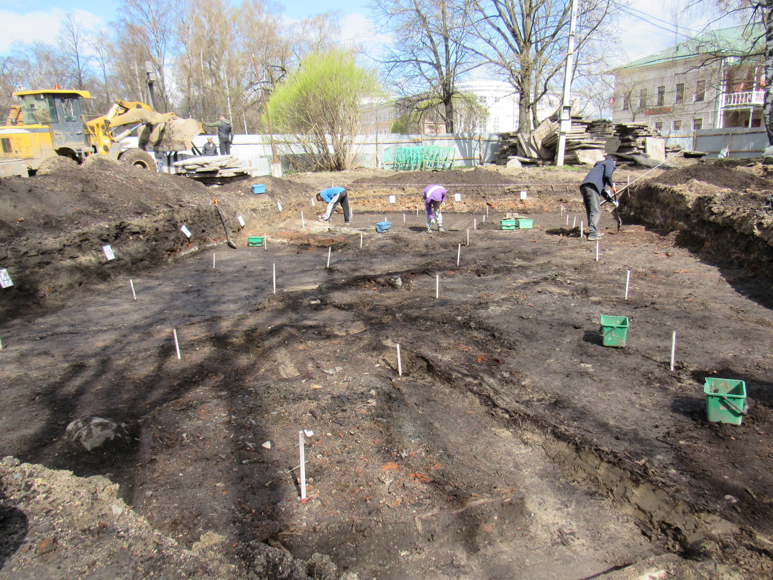 Директор Вологодского археологического центра Алексей Фёдоров поделился первыми результатами раскопок: «Наша организация проводит работы по сохранению археологического памятника «Культурный слой Нижнего Посада города Вологды». Мы работаем здесь уже второй сезон. В прошлом году начали работы по археологической разведке, целью которой было изучение структуры культурных напластований, чтобы далее использовать полученные данные для разработки раздела по обеспечению сохранности памятника».