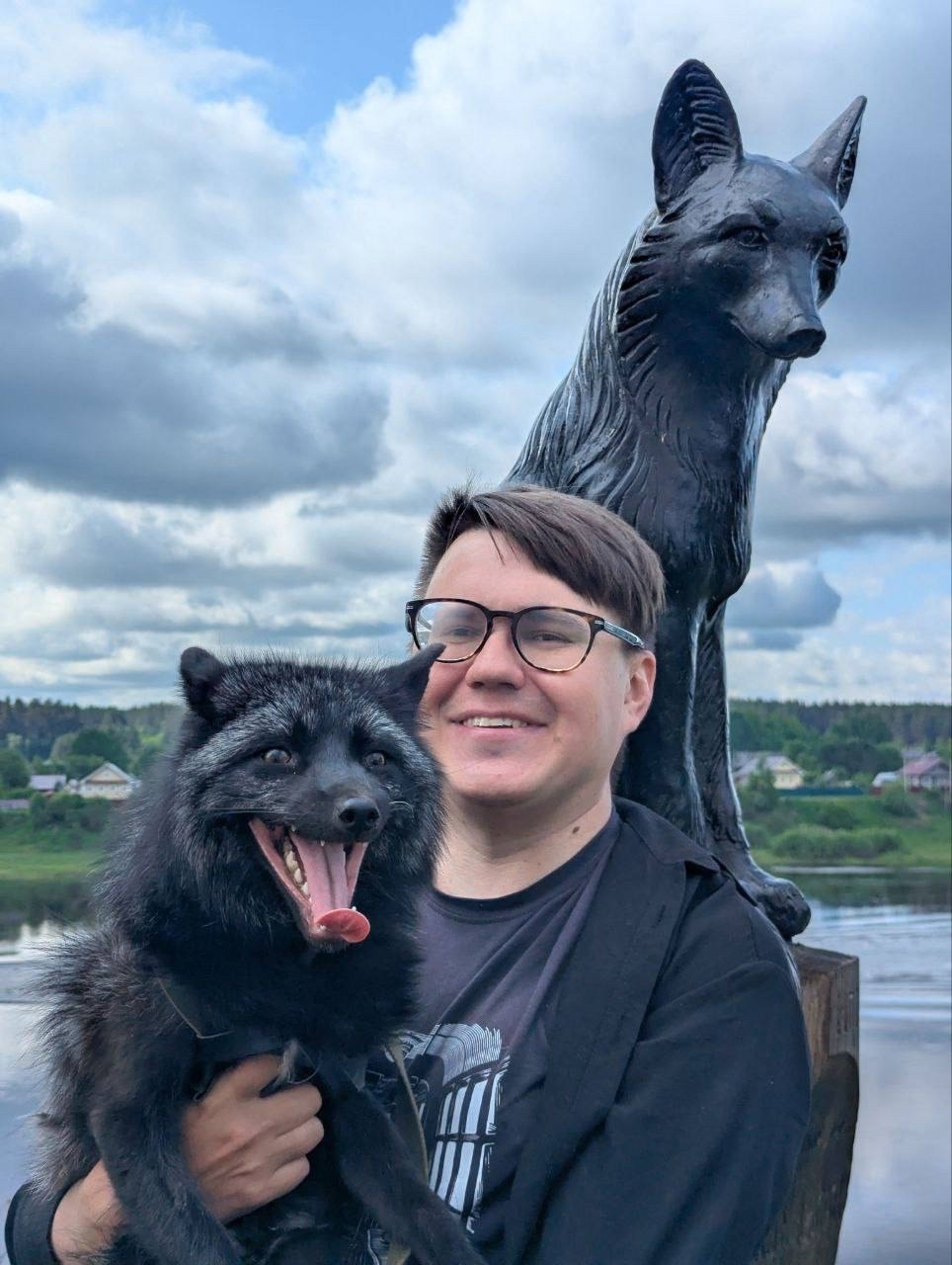 «Лис привык к поводку, ласковый, не кусается», – рассказывает о питомце хозяин.