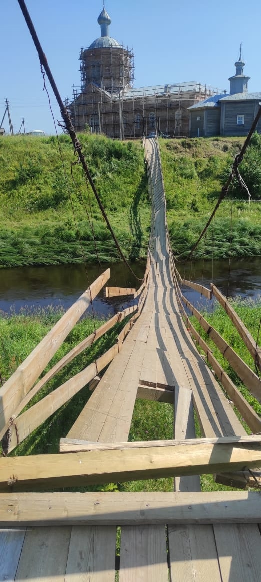 Происшествие случилось сегодня днём. Около 12:00 обрушился подвесной пешеходный мост через реку Юг, соединяющий деревню Дунилово и посёлок Дуниловский. По предварительным данным, оборвались тросы. В момент обрушения на переправе находились около 25 участников крестного хода.