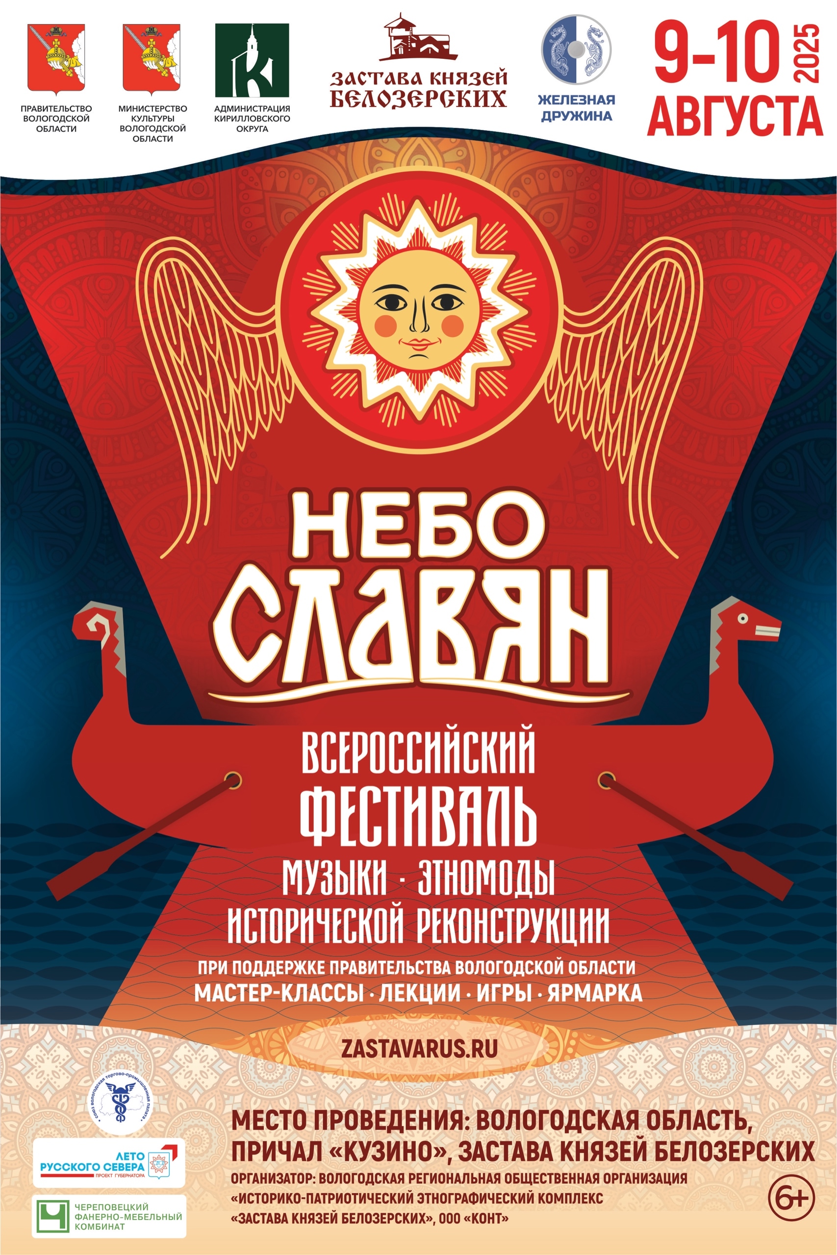 9 и 10 августа на территории историко-патриотического комплекса «Застава князей Белозерских» пройдёт IV Всероссийский фестиваль музыки, военно-исторической реконструкции и этномоды «Небо славян».
