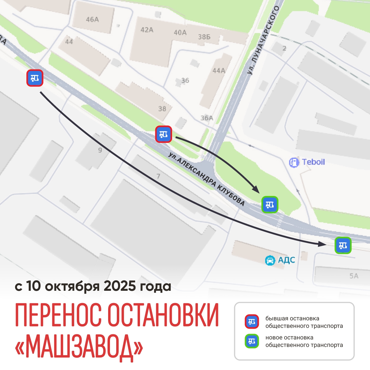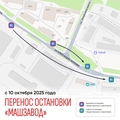 Помимо этого с 10 октября перенесут остановку «Машзавод». Две рядом стоящие остановки объединили в одну для удобства пассажиров. Автобусы маршрутов №403, 405, 406, 408, 412 будут осуществлять посадку и высадку пассажиров рядом с АЗС.
