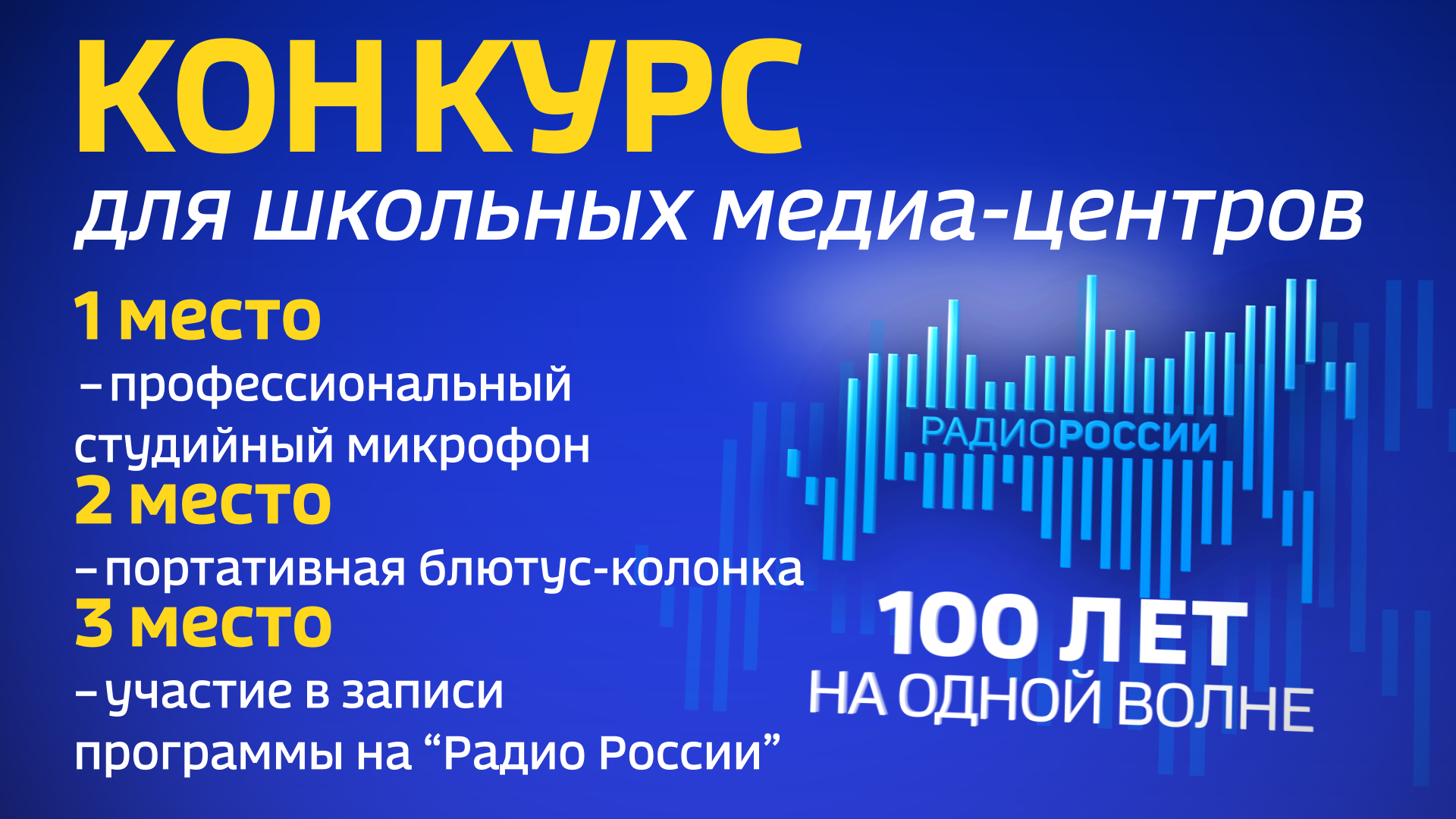 Призы: победитель конкурса получит профессиональный студийный микрофон. Также среди участников будут разыграны брендированные bluetooth-колонки с приёмником и возможность принять участие в записи программы на «Радио России».