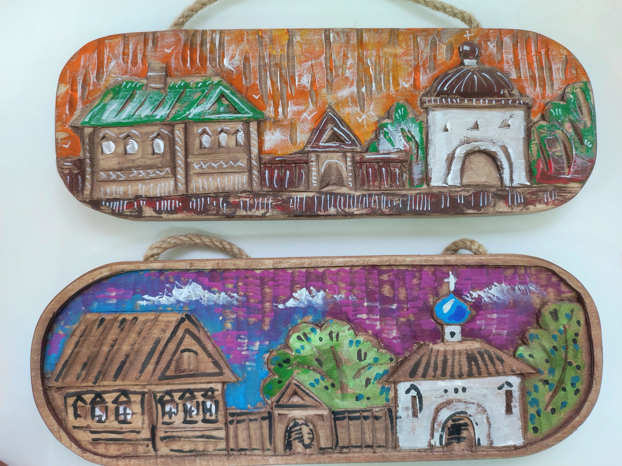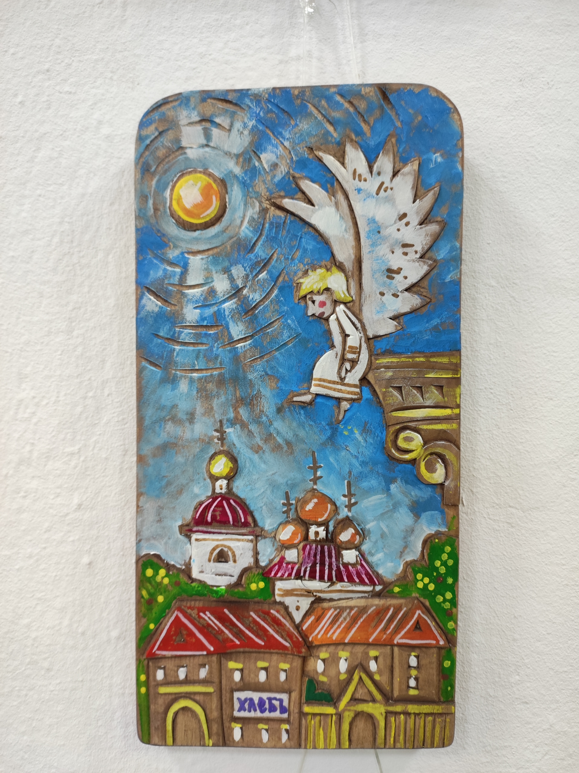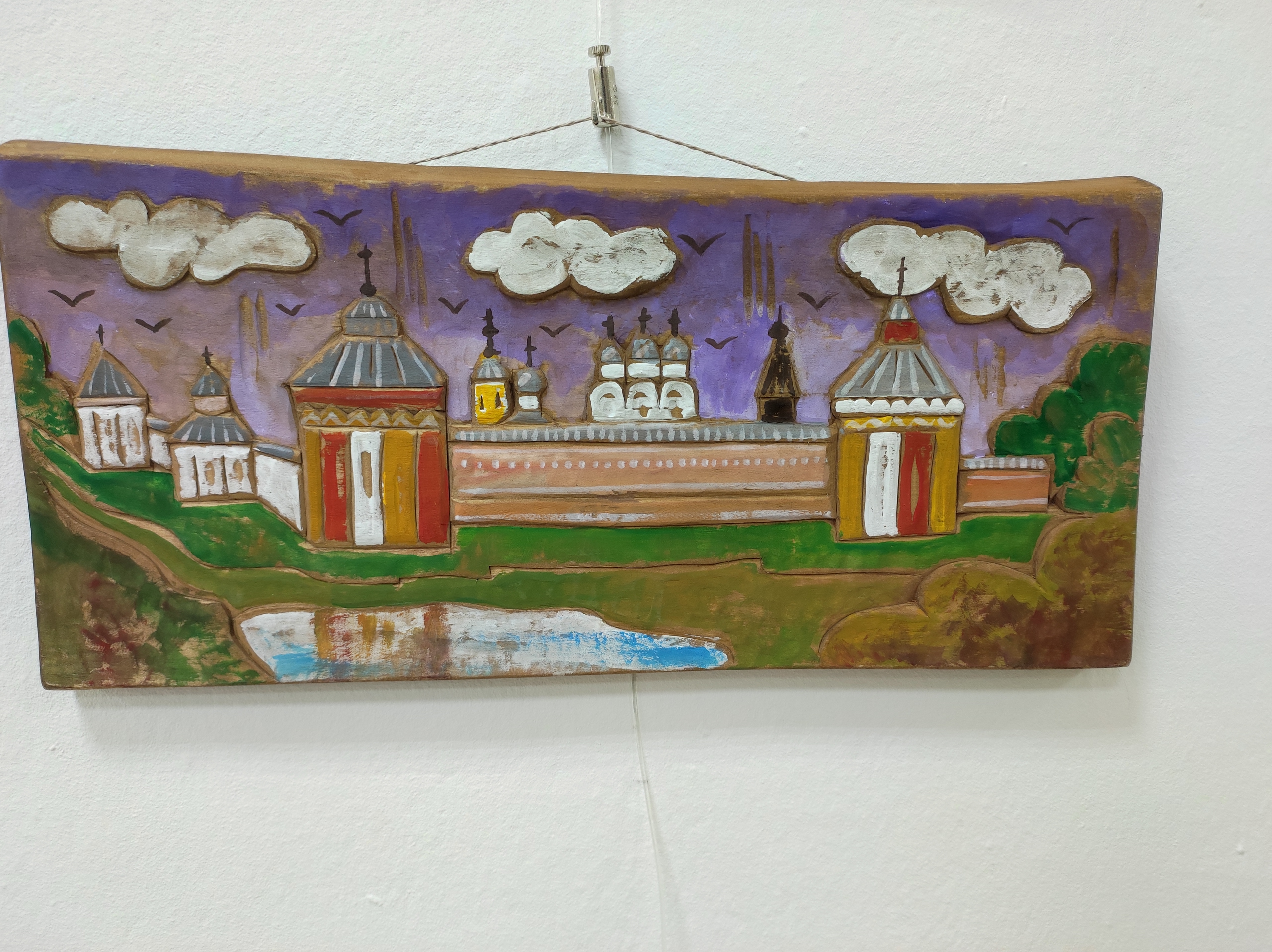 Олег Малинин, член союза русских художников, расписал деревянные заготовки, сделанные Алексеем Борисовым. На дереве изображены пейзажи Вологды и окрестностей города, виды Кирилло-Белозерского монастыря – одного из самых известных историко-архитектурных памятников региона. Не менее ярким экспонатом стали авторские иконы.