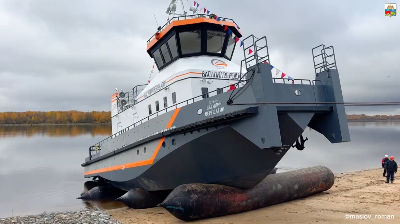 Новый теплоход «Василий Верещагин» спущен на воду в Череповце