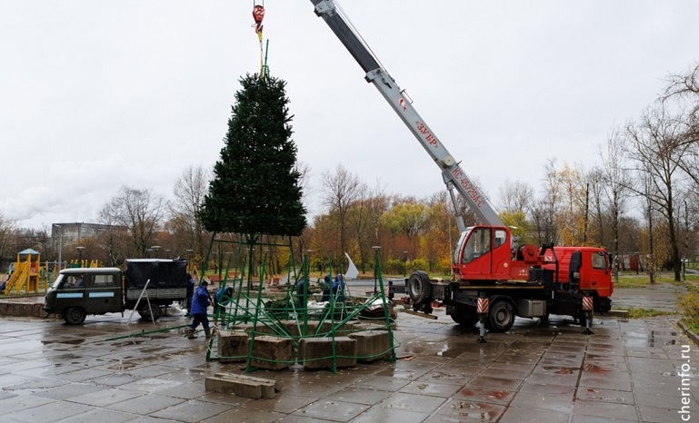 Подготовку к грядущим зимним праздникам начали с понедельника, 27 октября. В частности, в Череповце стартовал монтаж новогодних ёлок. Первое праздничное дерево поставят у ДК «Северный». Специалисты «Водоканала» уже приступили к его установке.