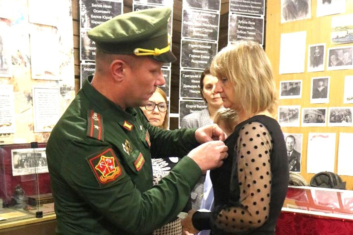 Государственную награду вручили вдове и сыну Александра Павловича Морозова. Церемония прошла в музее Боевой славы Бубровской школы.
