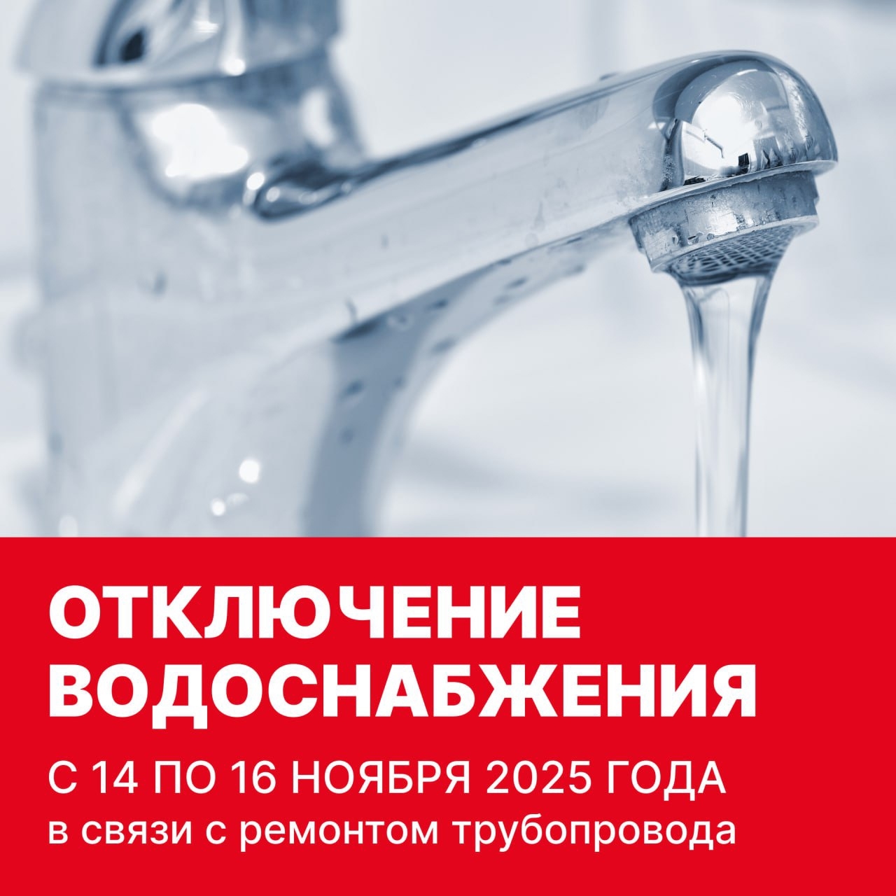 МУП «Вологдагорводоканал» уведомил о грядущих ограничениях водоснабжения. Они связаны с проведением работ по устранению утечек на магистральном трубопроводе на улицах Клубова и Окружного шоссе. Подача воды прекратится в пятницу, 14 ноября, в 22:00 и возобновится в воскресенье, 16 ноября, до 22:00.