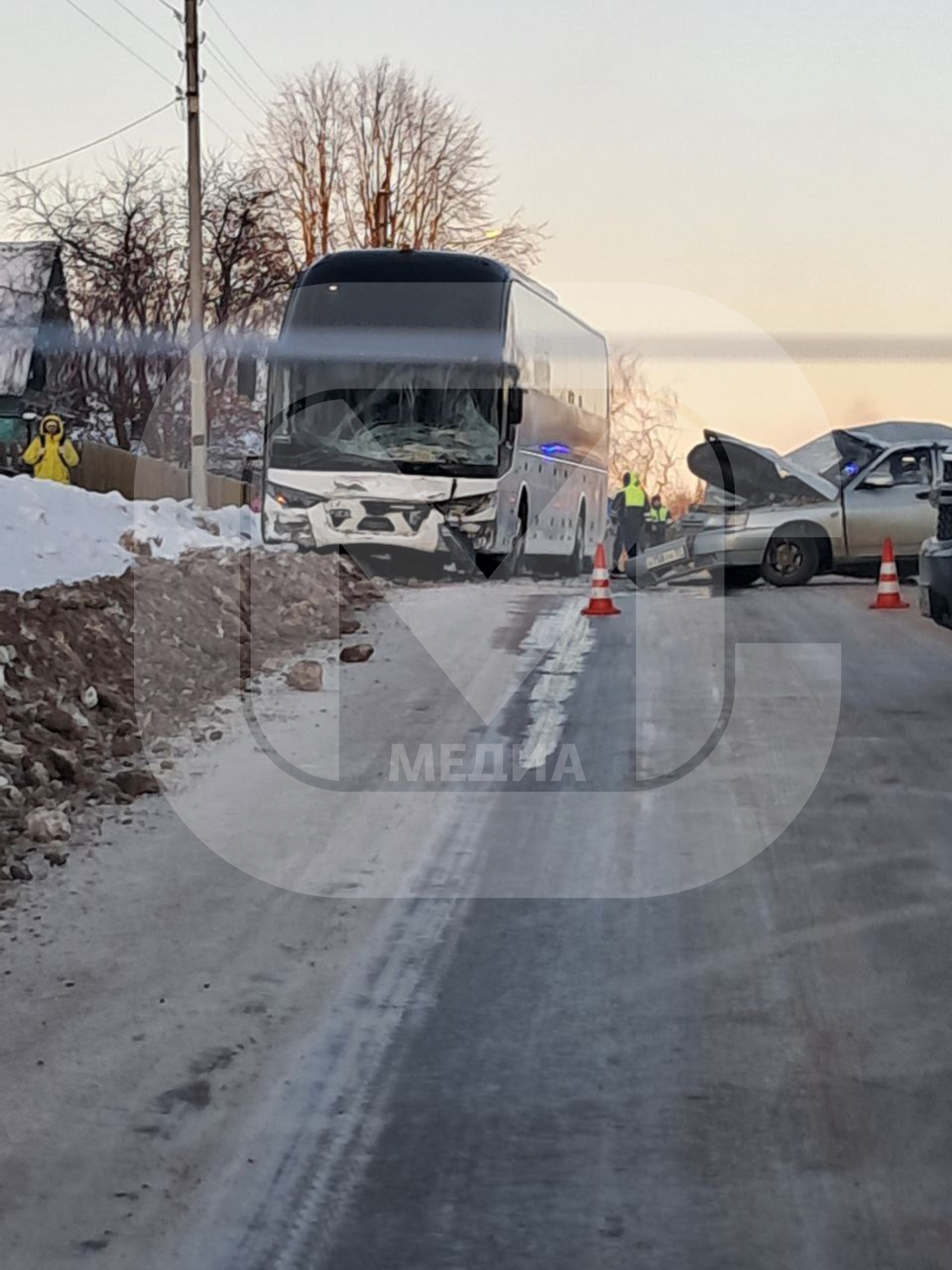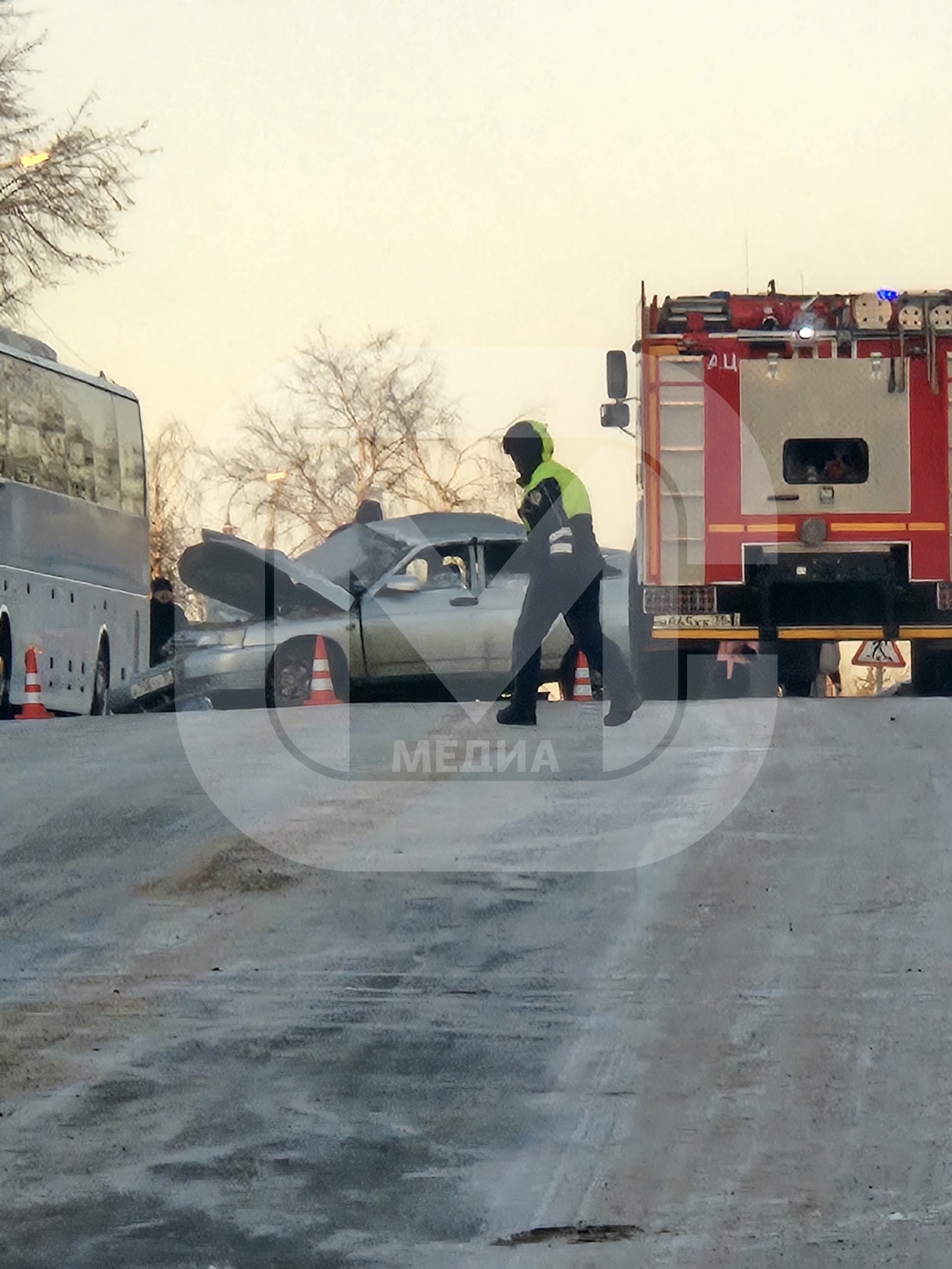 По предварительным сведениям, автомобиль ВАЗ 2110 врезался в туристический автобус. По каким причинам произошло столкновение – пока неясно. Известно, что в результате удара погибла женщина, находившаяся в салоне легковой машины. Кто это – водитель или пассажир – пока так же неясно; личность погибшей пока не установлена. Находились ли в момент столкновения пассажиры в автобусе – неизвестно.