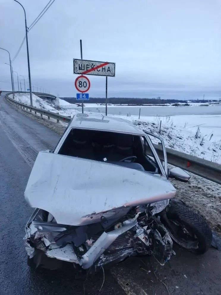 Автомобиль ВАЗ-21140 ехал по трассе на территории Шекснинского округа. За рулём находился молодой человек 2003 г. р. На 84 километре машина по какой-то причине врезалась в металлическое дорожное ограждение.