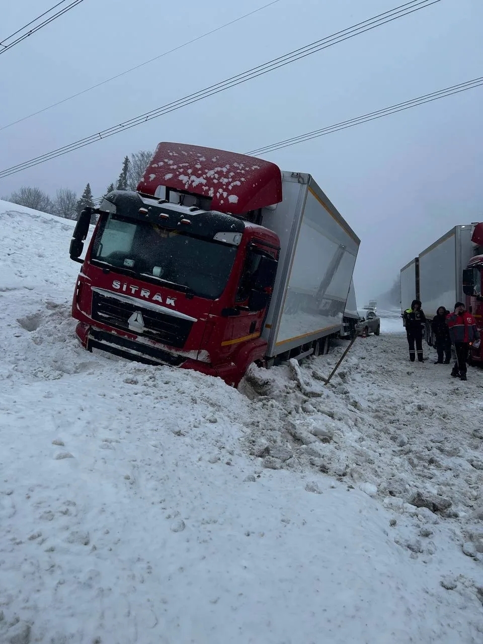 Водитель 1984 г.р., находясь за рулём грузового автомобиля «SITRAK» с полуприцепом, пытался избежать ДТП и применил торможение. За ним ехал такой же грузовик «SITRAK» с полуприцепом. Водитель 1970 г.р. второго большегруза во избежание столкновения съехал в кювет. Следовавший за первыми двумя машинами грузовик «Ивеко» под управлением мужчины 1976 г.р. во избежание ДТП принял решение уйти на встречную полосу. В результате манёвра он допустил столкновение с двигавшейся навстречу «Газелью», за рулём которой находился водитель 2004 г.р. Кроме того, грузовик «Ивеко» врезался и в «КАМАЗ» дорожной службы. Спецтранспортом управлял водитель 1975 г.р.