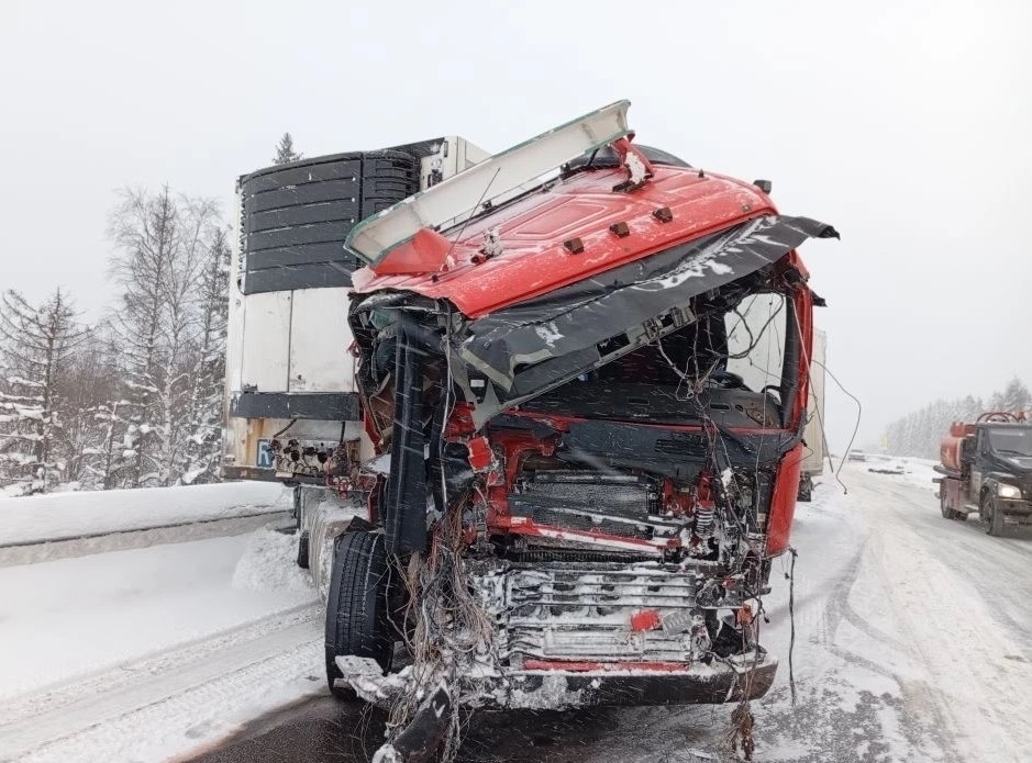 Через некоторое время на этом же участке трассы произошла ещё одна авария. По предварительной информации, водитель КАМАЗа останавливался перед опрокинутой фурой и в это время в него врезался тягач «Вольво».