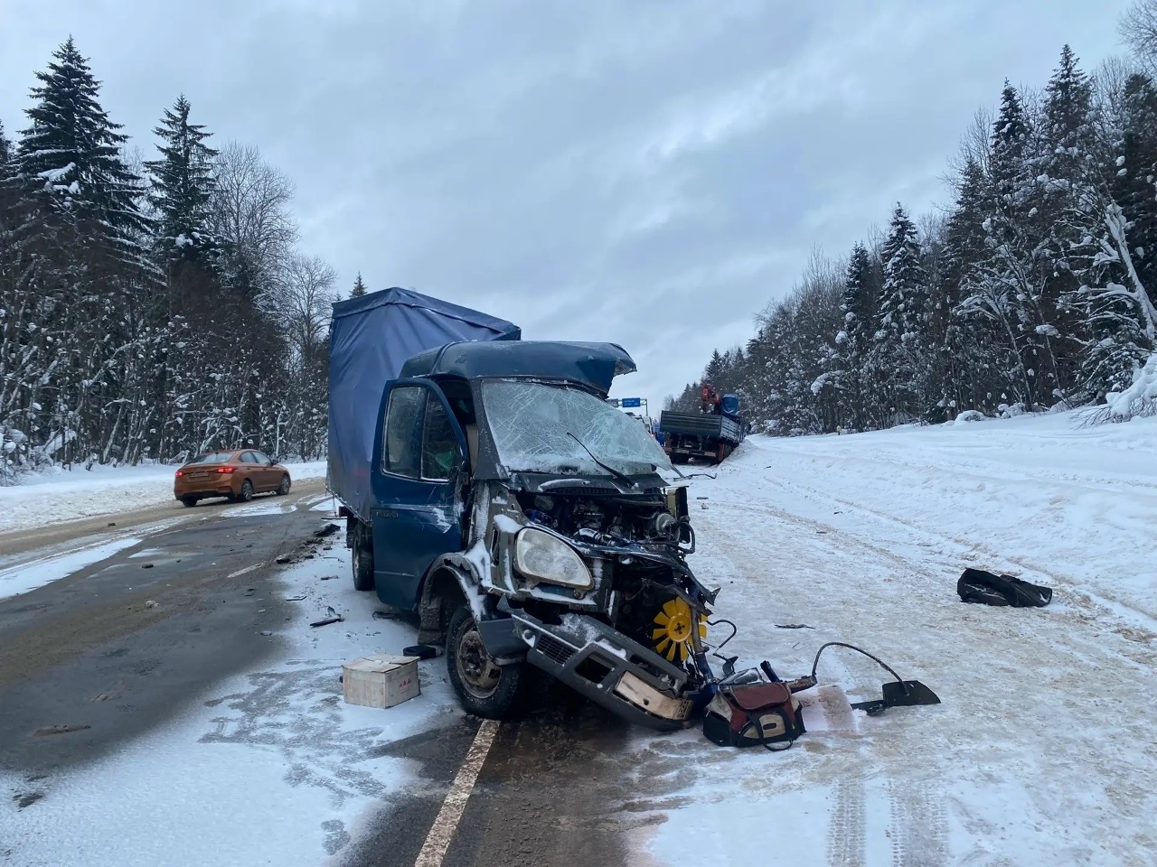 По предварительным данным, мужчина 1955 г. р. ехал за рулём «Газели». Он двигался со стороны Архангельска в направлении Москвы. Водитель выехал на встречную полосу. В итоге «Газель» на скорости столкнулась с КамАЗом. За рулём большегруза находился мужчина 1987 г. р.