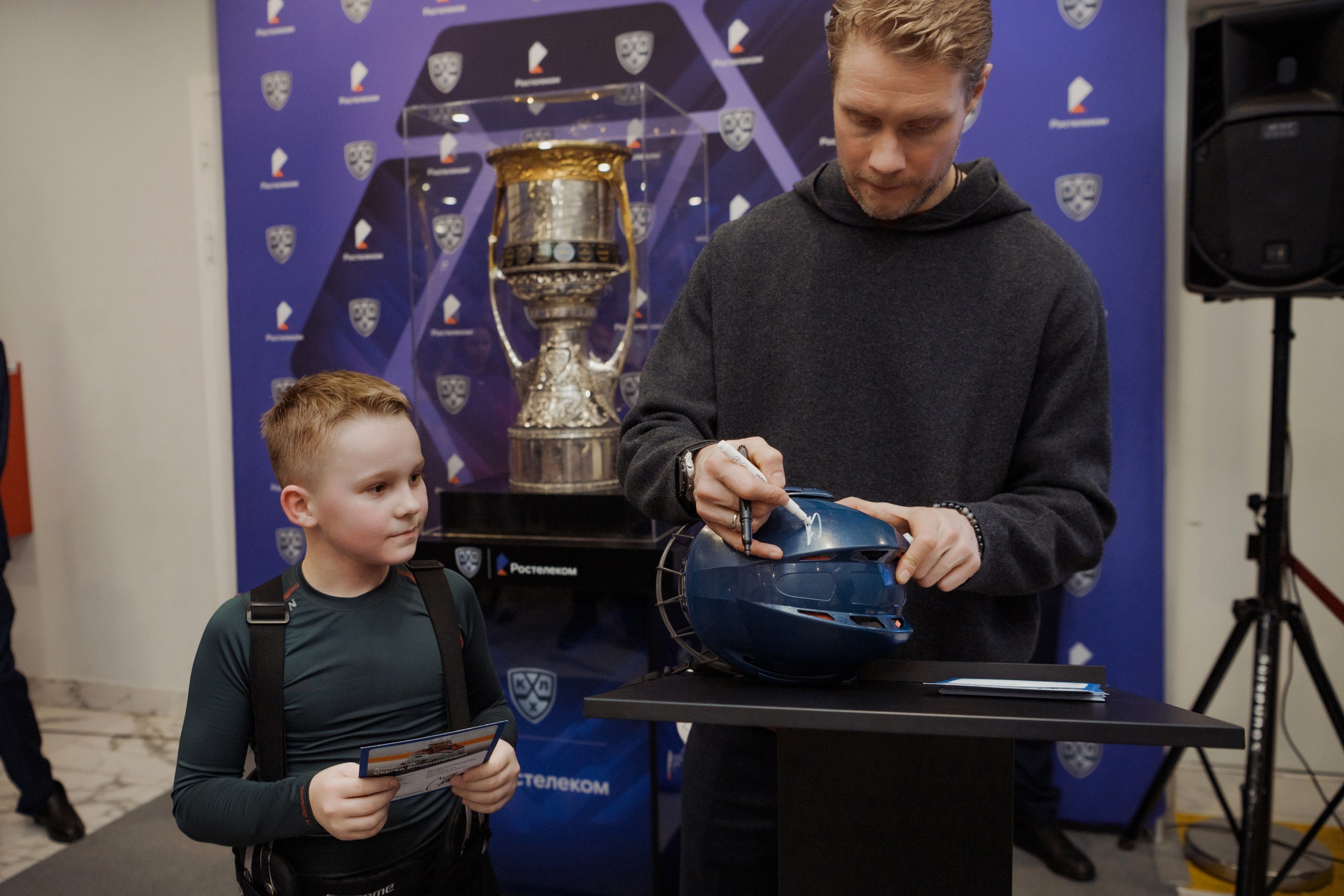 На этот раз легендарная хоккейная награда сделала остановку в Вологде, где 19 и 20 февраля его смогли увидеть все любители хоккея и спорта. В рамках экспонирования олимпийский чемпион и двукратный обладатель Кубка Гагарина Сергей Андронов оставил свои автографы на 450 картах и хоккейных атрибутах, включая шайбы, шарфы, шлемы и щитки.