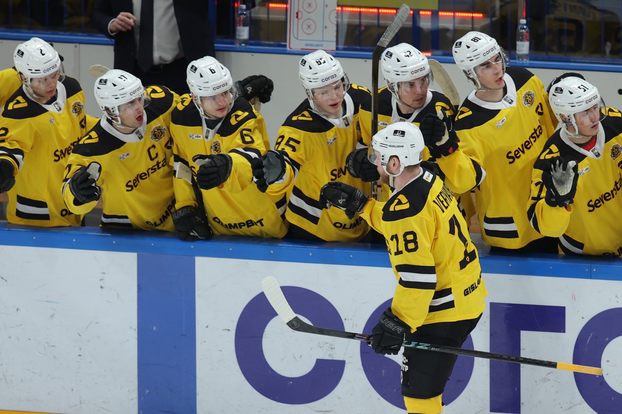 Матч проходил с переменным успехом. Первый период был за «Северсталью» – череповчане отправили в ворота соперника две шайбы. Точными бросками отличились нападающие Данил Веряев и Илья Квочко.