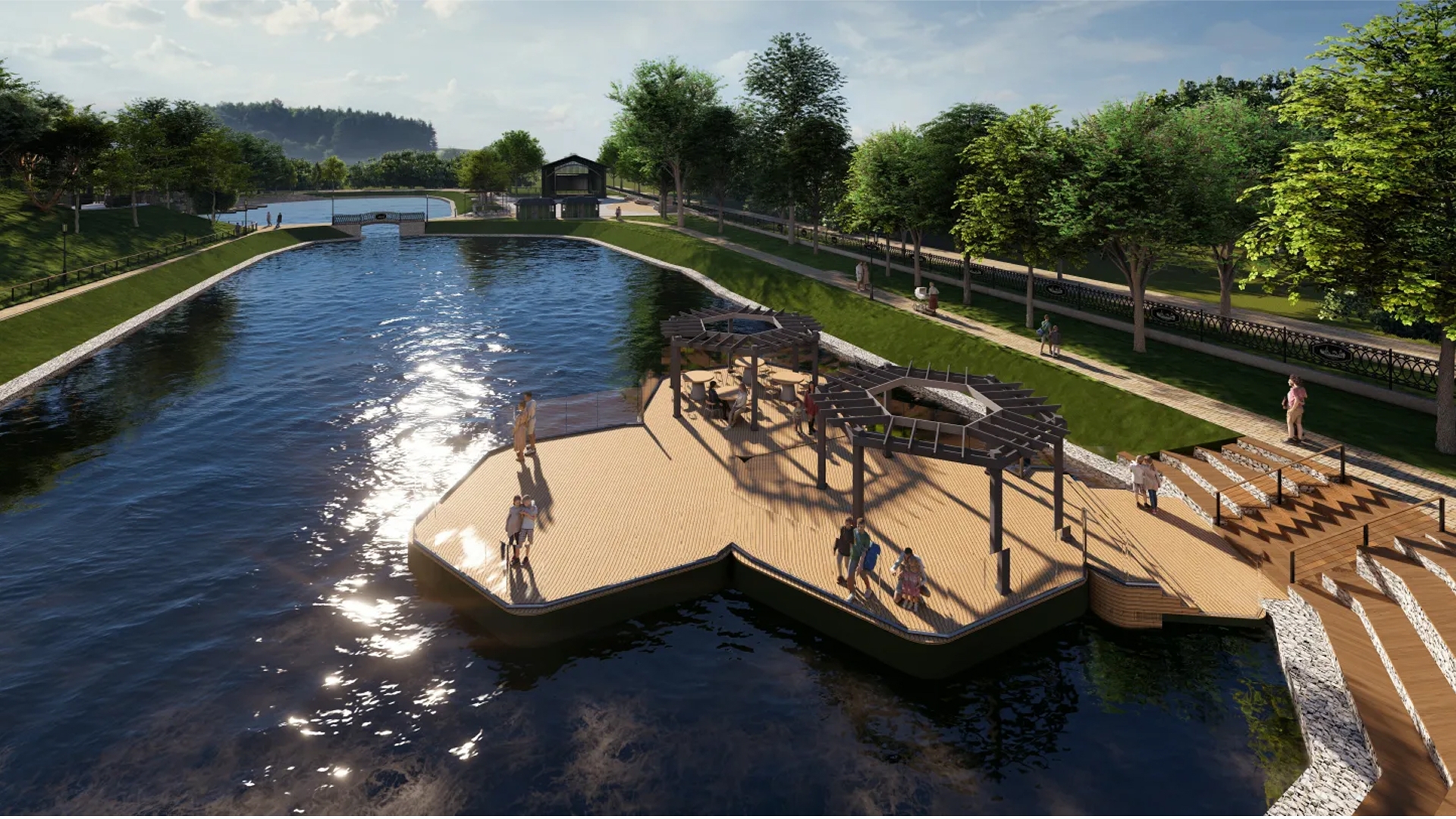 В скором времени в парке появится событийная площадь со сценой для проведения мероприятий, современная детская площадка, зона отдыха с качелями. Кроме того, сохранится площадка для изучения детьми правил дорожного движения. На холме рядом с прудами построят беседку с лестницей-амфитеатром. Сами пруды будут оборудованы небольшими причалами для дальнейшей работы катамаранов и лодок.