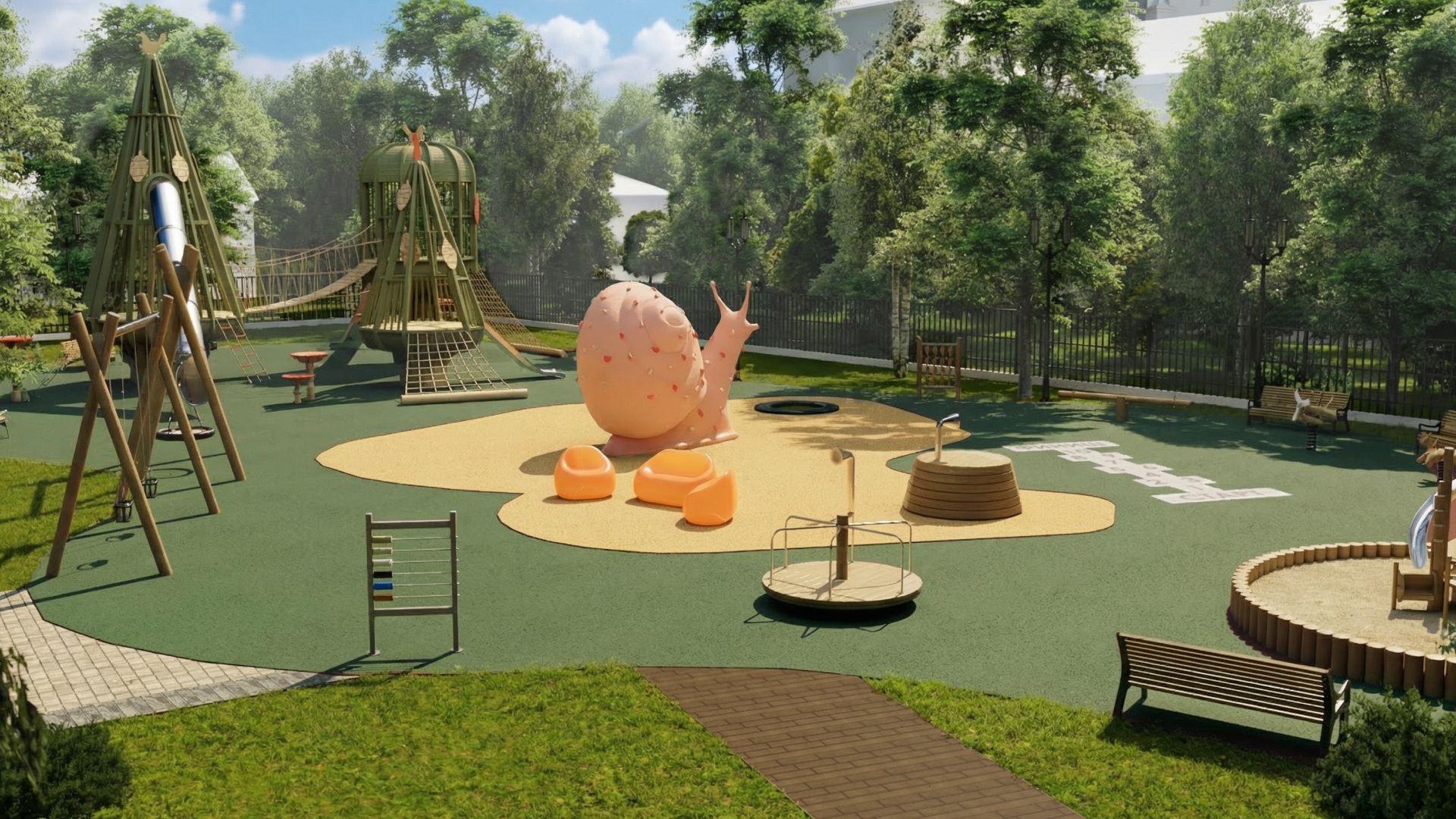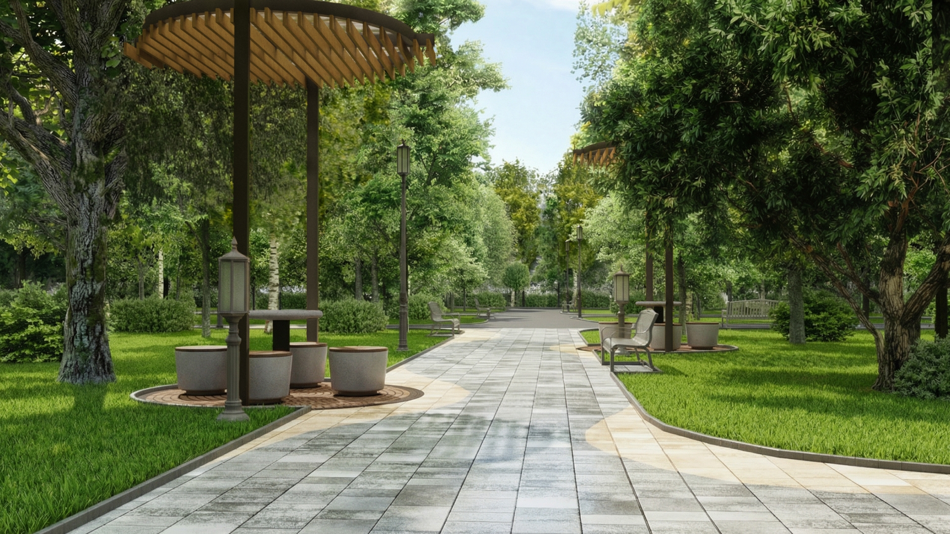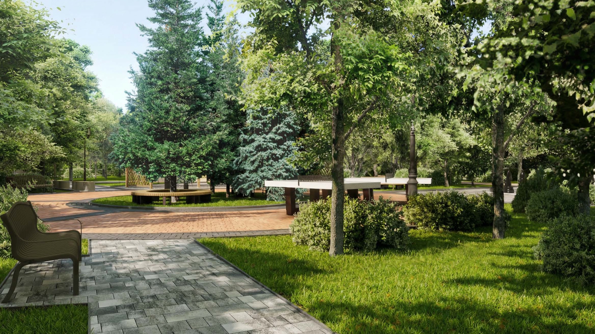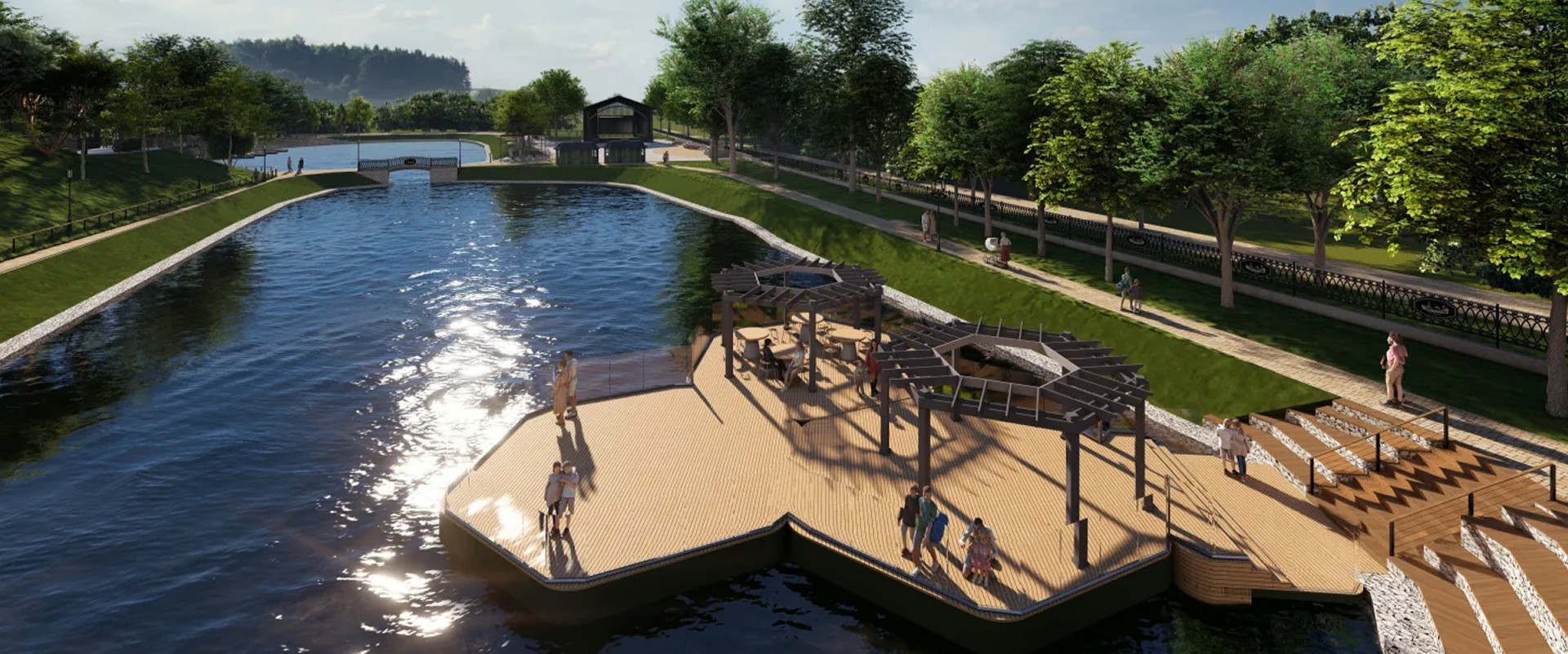 Парк будет поделён на несколько функциональных зон. Здесь появится сцена, в зоне искусственных прудов очистят акваторию, укрепят и озеленят откосы. Кроме того, на территории у прудов установят малые архитектурные формы и обустроят пирс для катамаранов. Рядом с прудами разместится зона отдыха с беседкой и лестницей-амфитеатром.