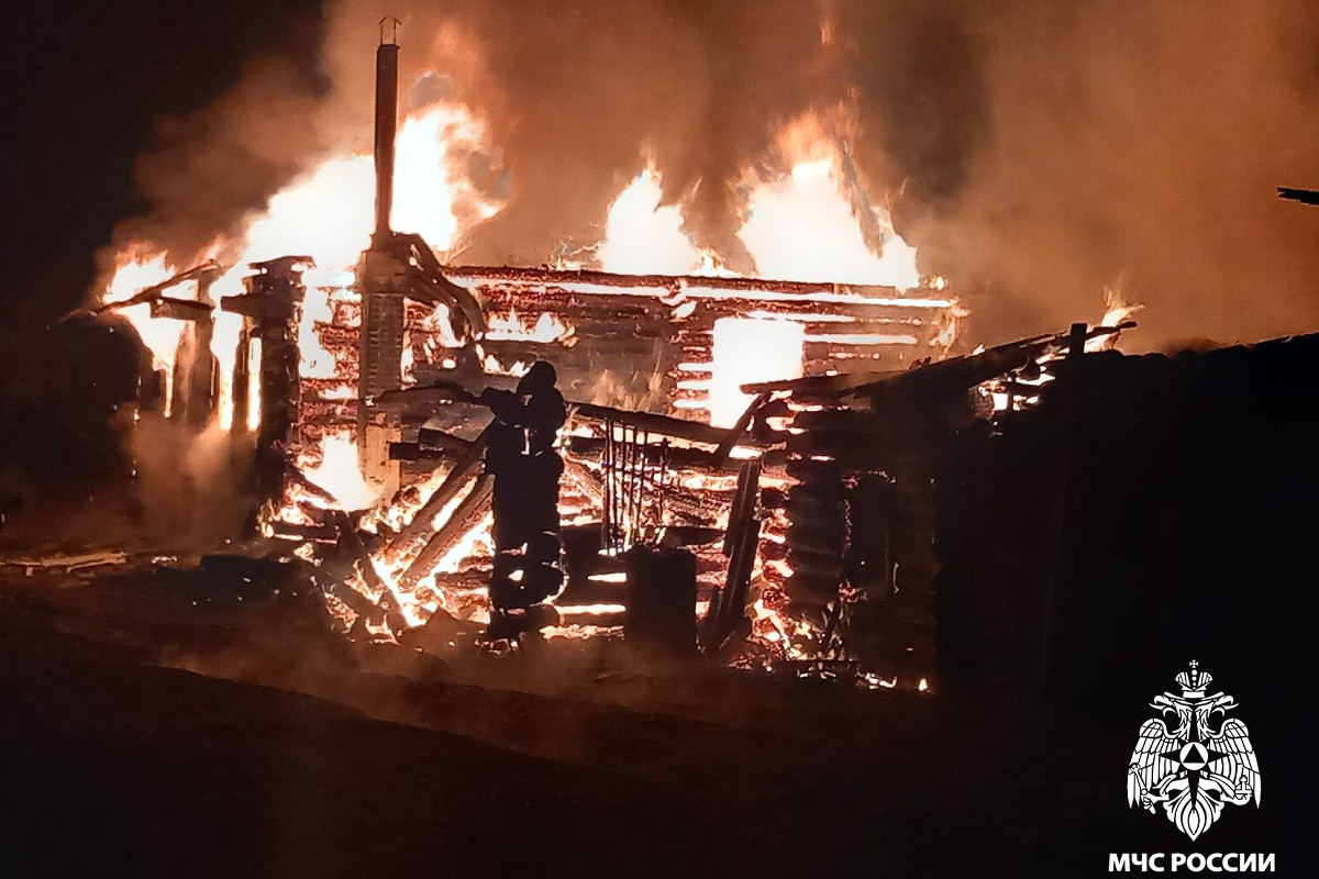 Пламя полностью уничтожило деревянную постройку.