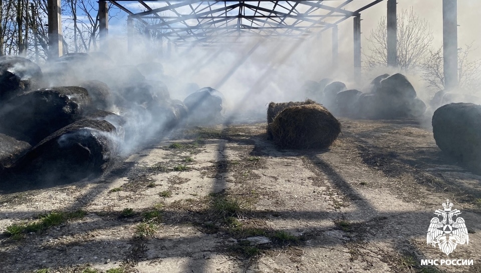 ЧП произошло в деревне Самойлово. В одном из ангаров загорелись рулоны соломы. Огонь мгновенно распространился на 480 квадратных метров.